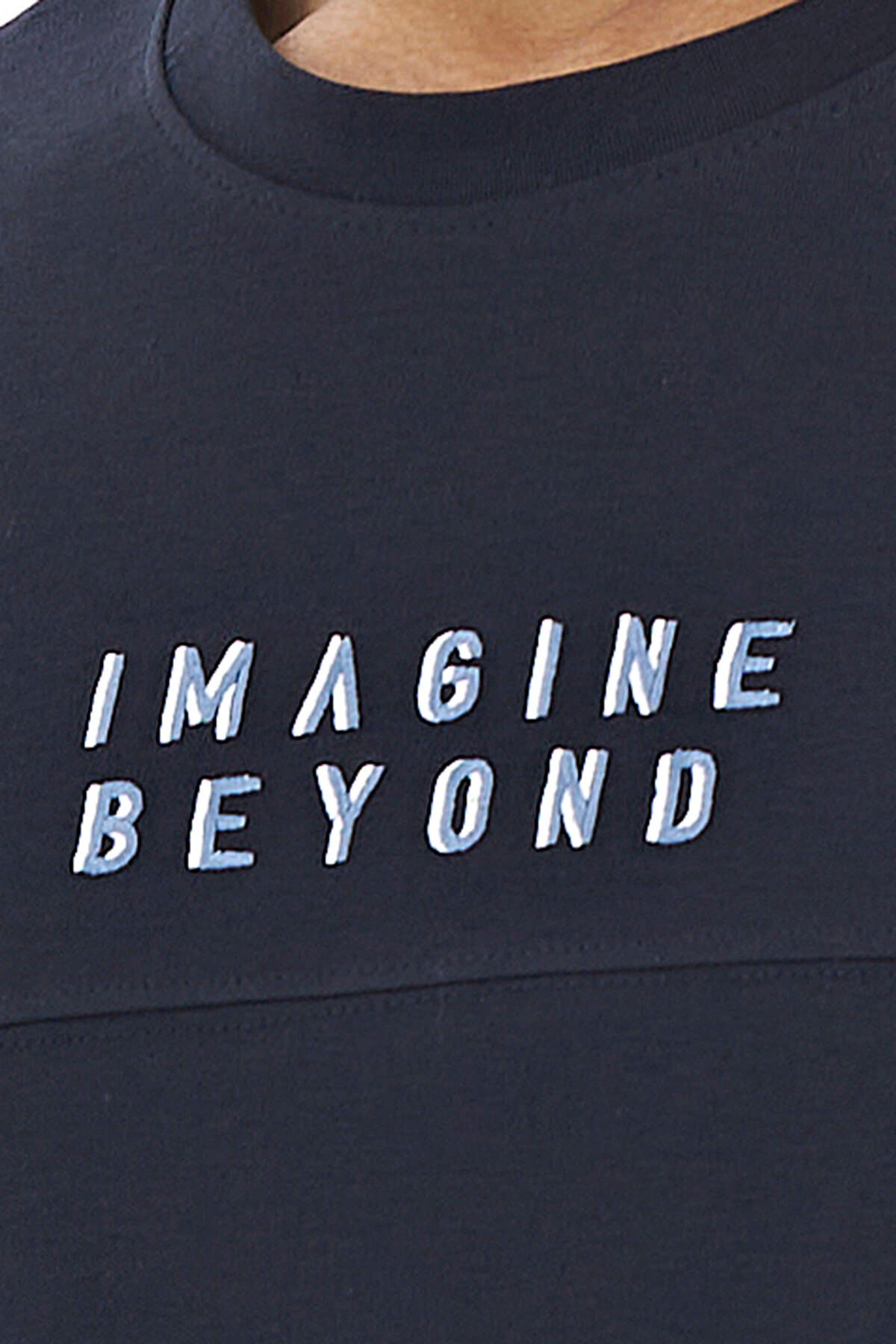 Navy Blue Embroidered Oversize O Collar Men's T-Shirt - 88178