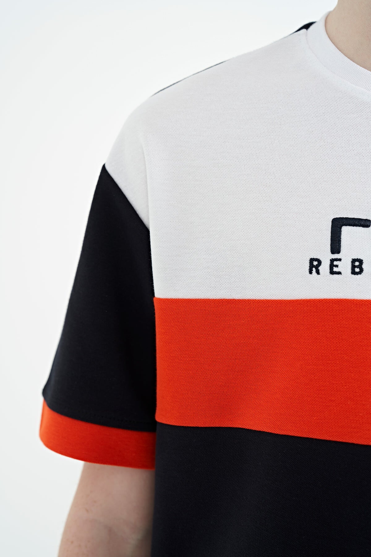 Navy Blue Gradient Embroidered Oversize Boys T-Shirt - 11159