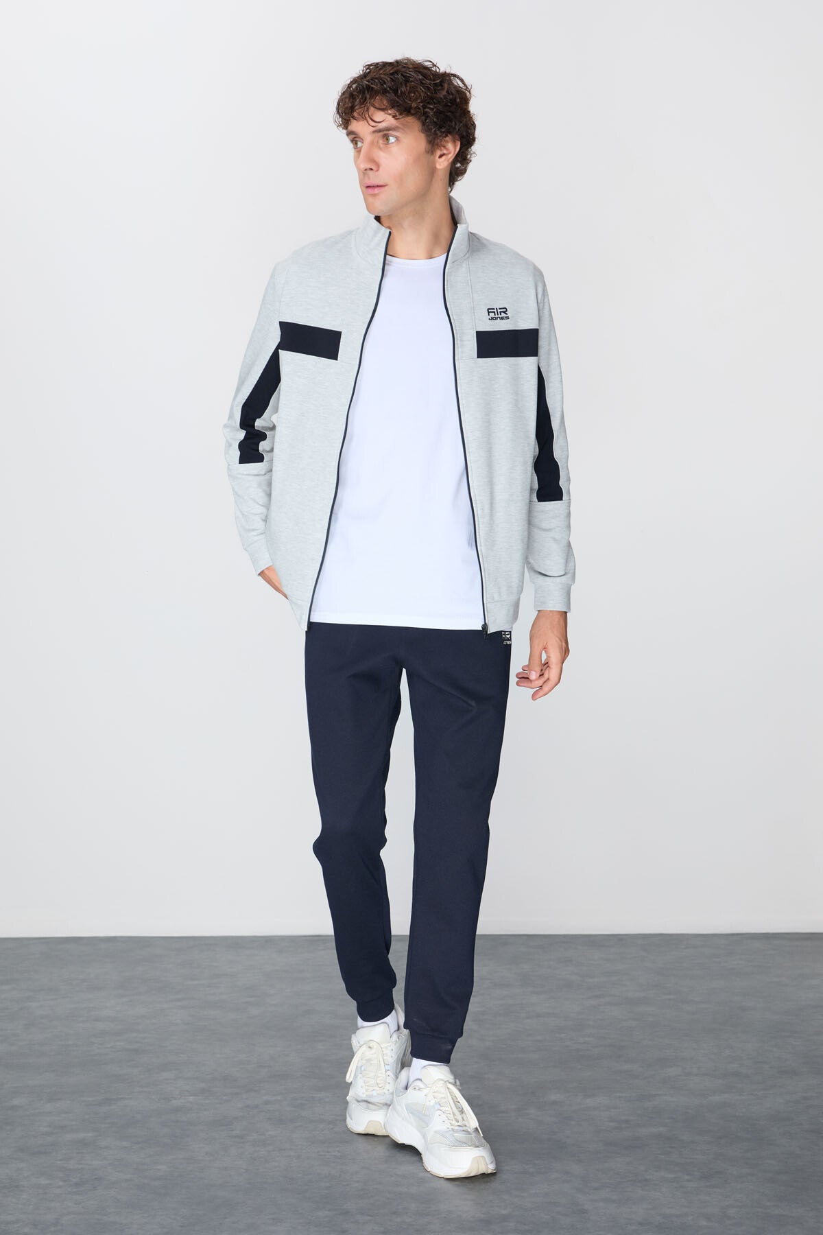 Navy Blue-Green Textured Surface Standard Fit Embroidered Men's Tracksuit Set - 85248