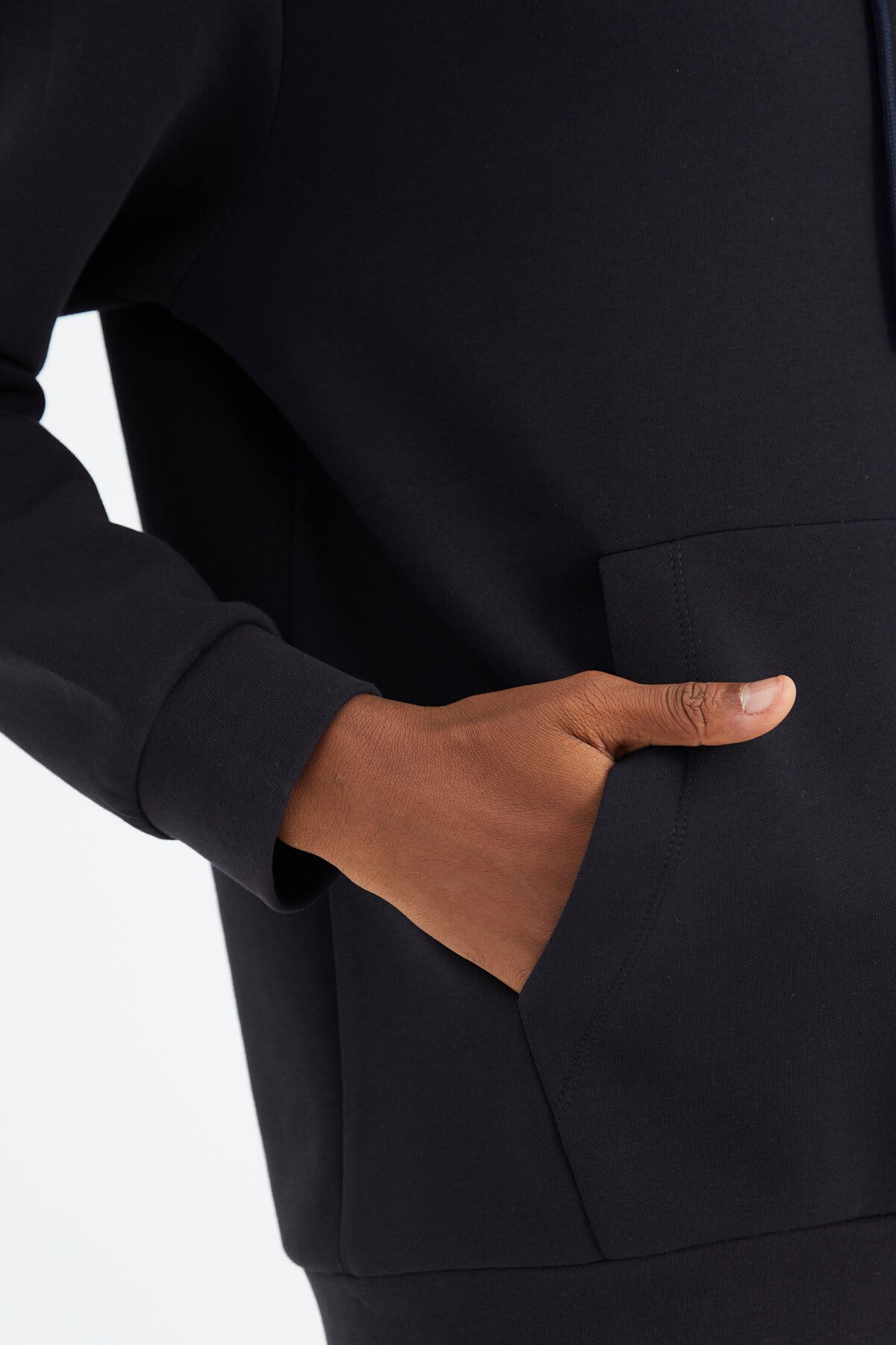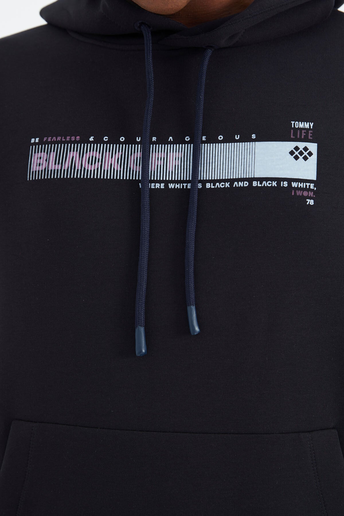 Navy Blue Hooded Laced Print Detailed Relax Fit Men's Sweatshirt - 88287