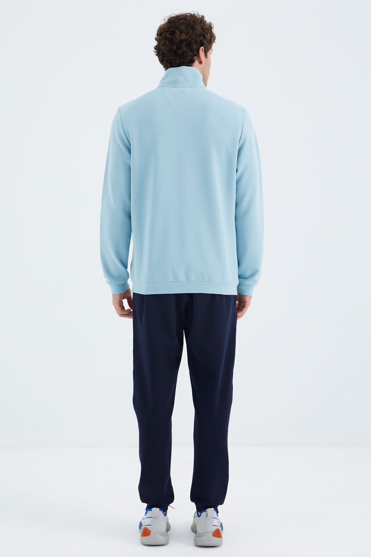 Navy Blue - Indigo Stand Collar Hidden Pocket Detailed Relax Fit Men's Tracksuit Set - 85220