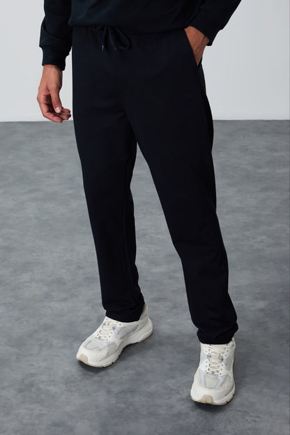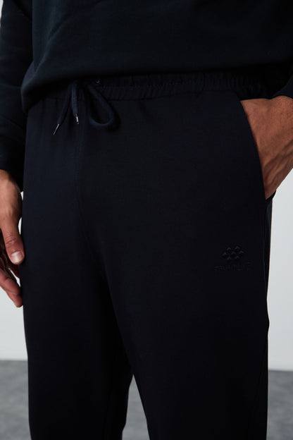 Navy Blue Laced Hem Standard Fit Classic Cuff Men's Tracksuit Bottom - 84682