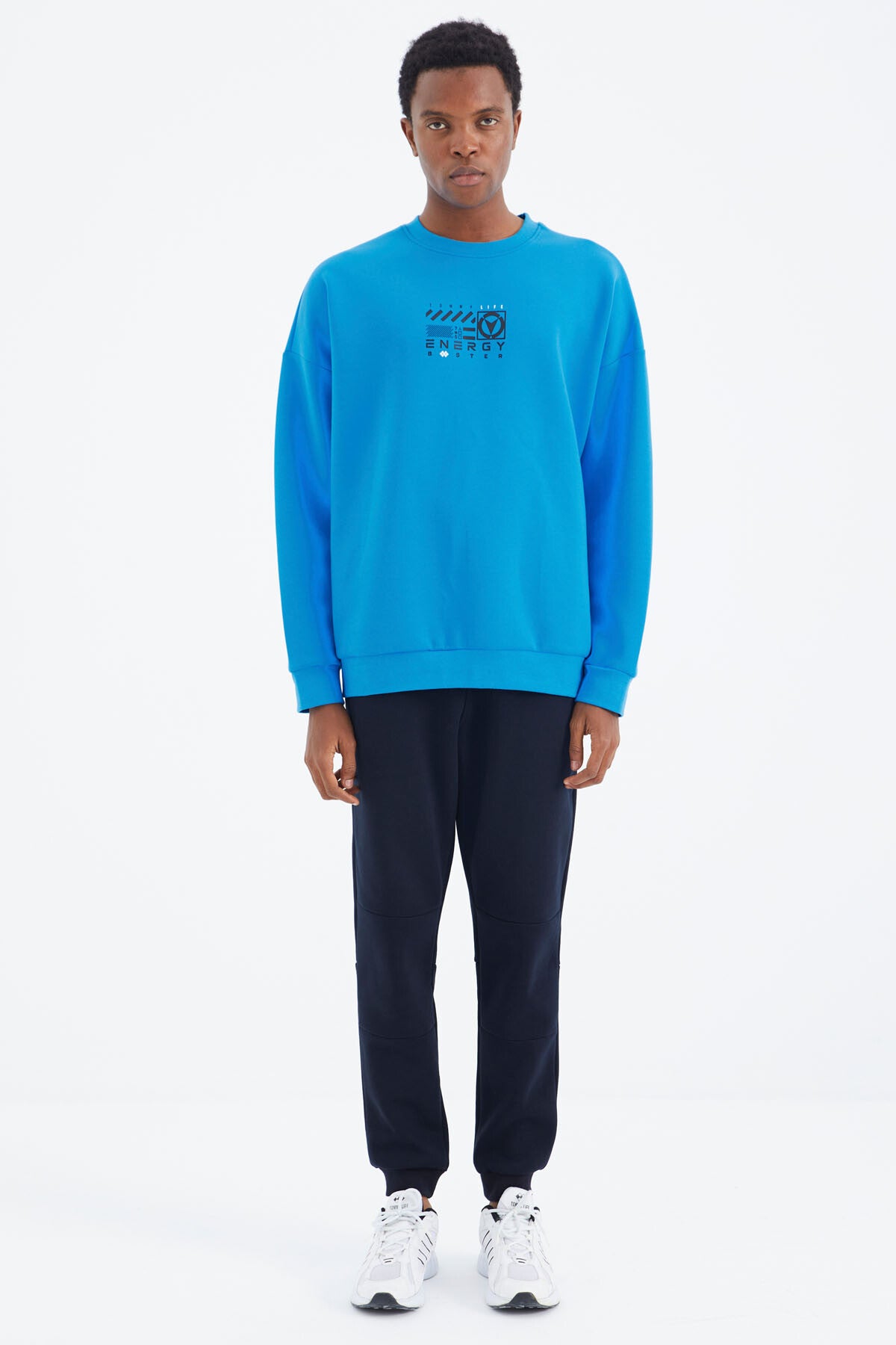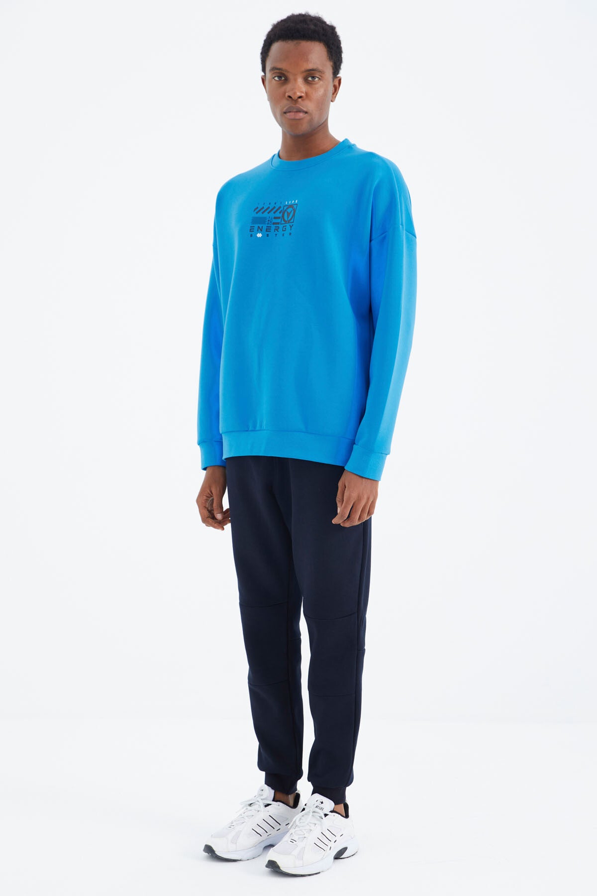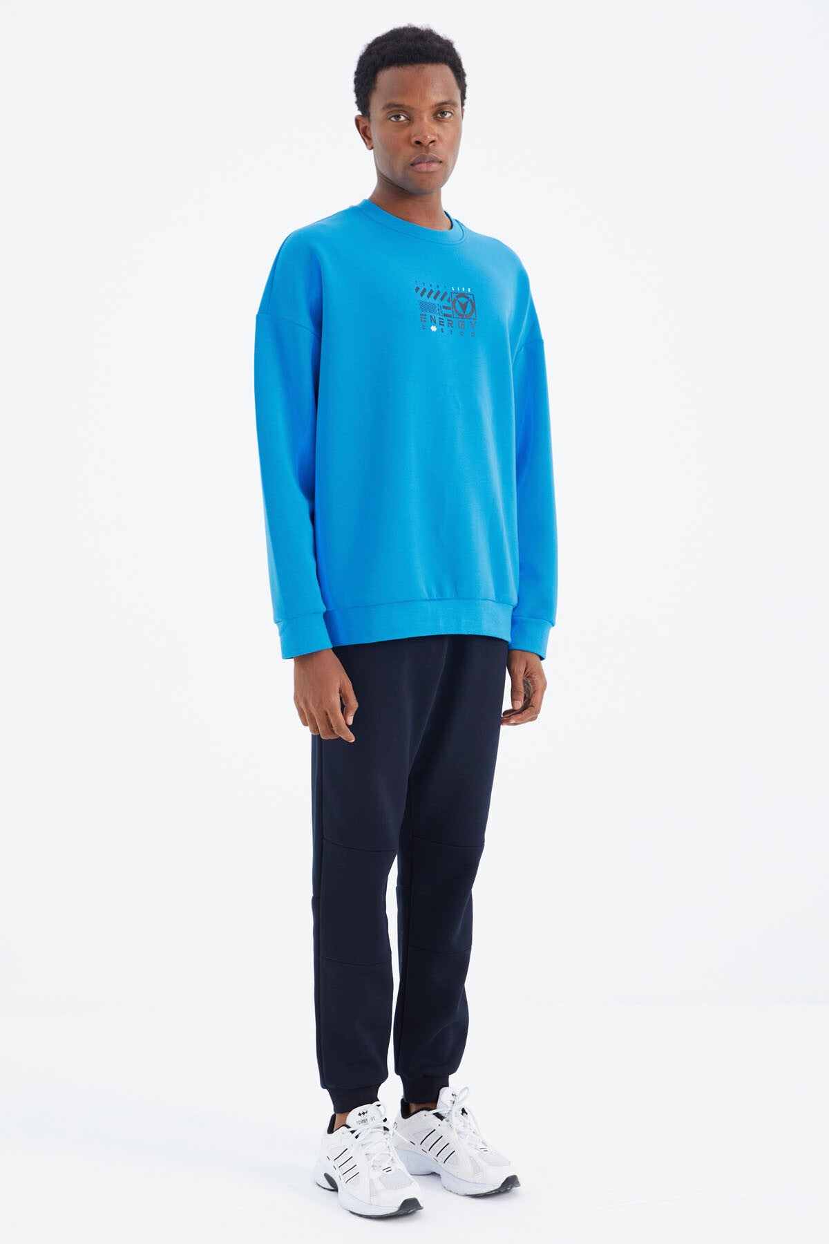 Navy Blue Laced Striped Detailed Relax Fit Men's Tracksuit Bottom - 82106