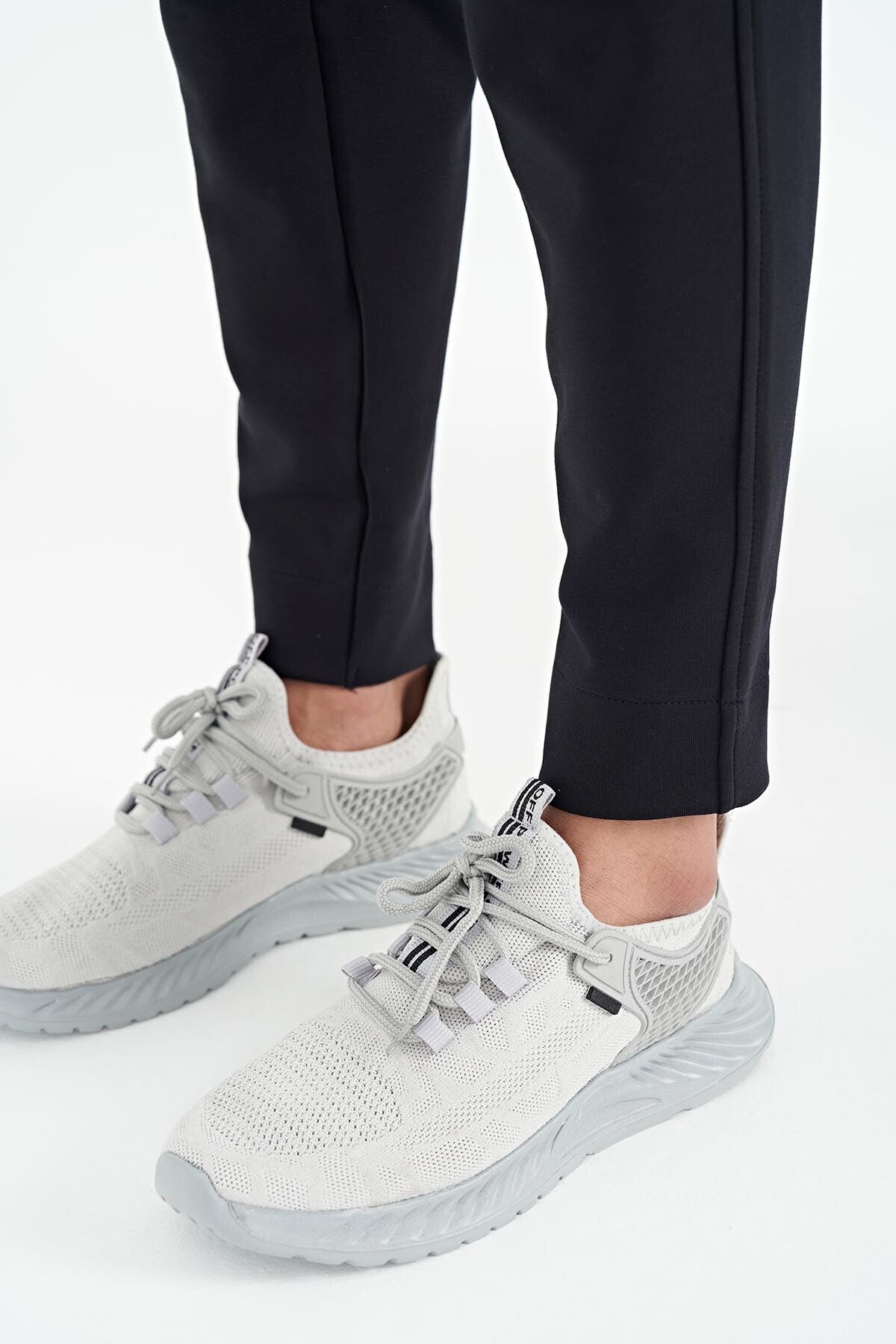 Navy Blue Logo Embroidered Stand-Up Collar Zippered Hidden Pocket Detailed Men's Tracksuit Set - 85201