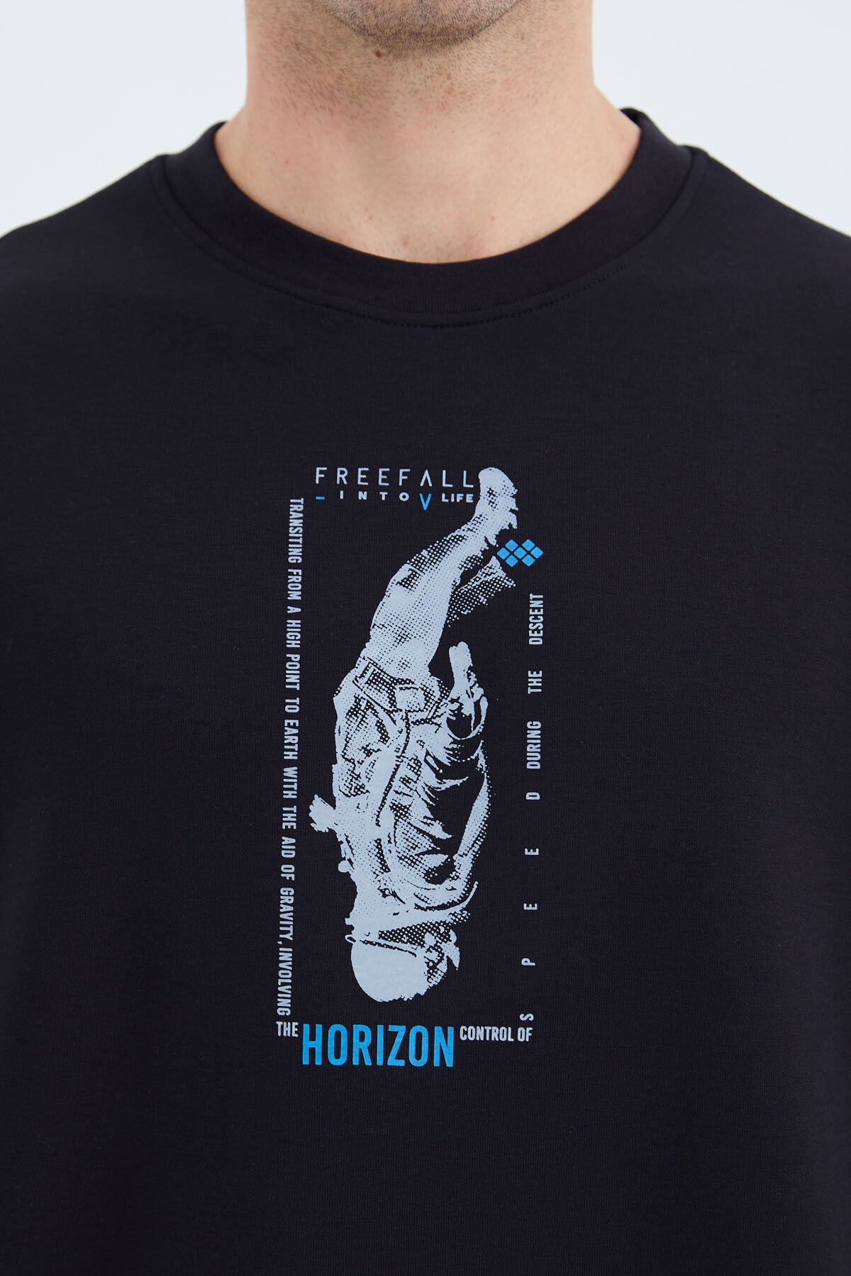 Navy Blue O Collar Printed Detailed Relax Fit Men's Sweatshirt - 88283