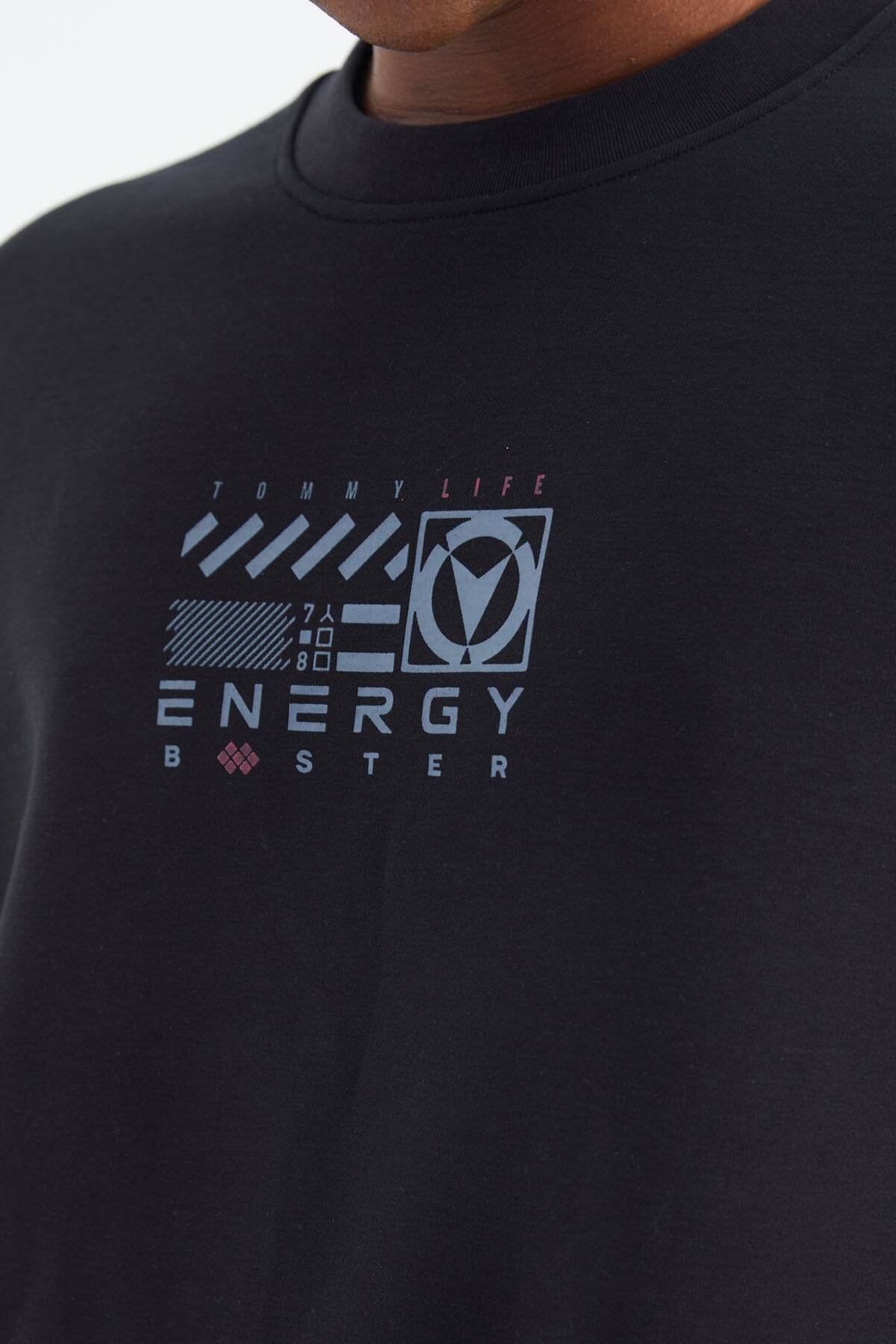 Navy Blue O Collar Printed Detailed Relax Fit Men's Sweatshirt - 88284