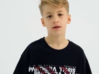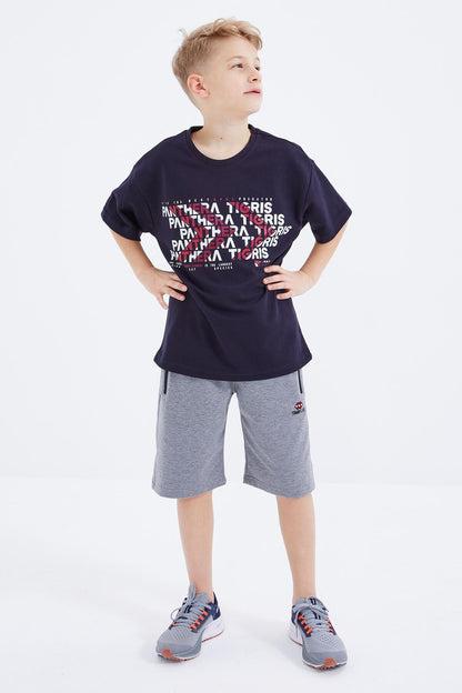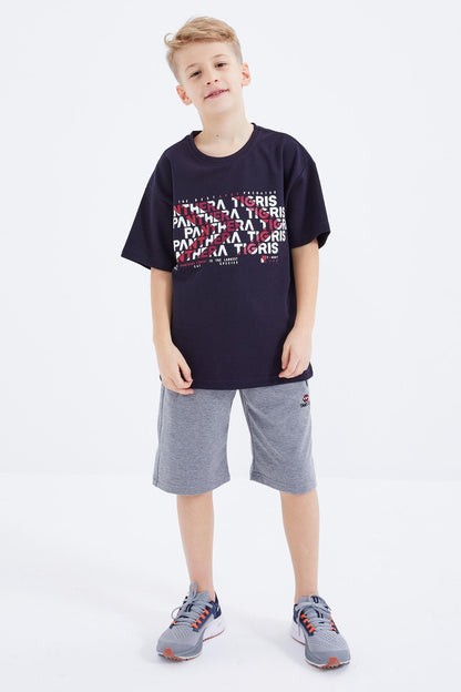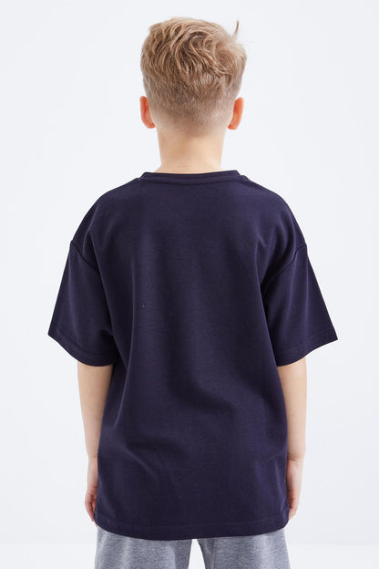 Navy Blue Oversize Print Short Sleeve O Neck Boys' T-Shirt - 10930