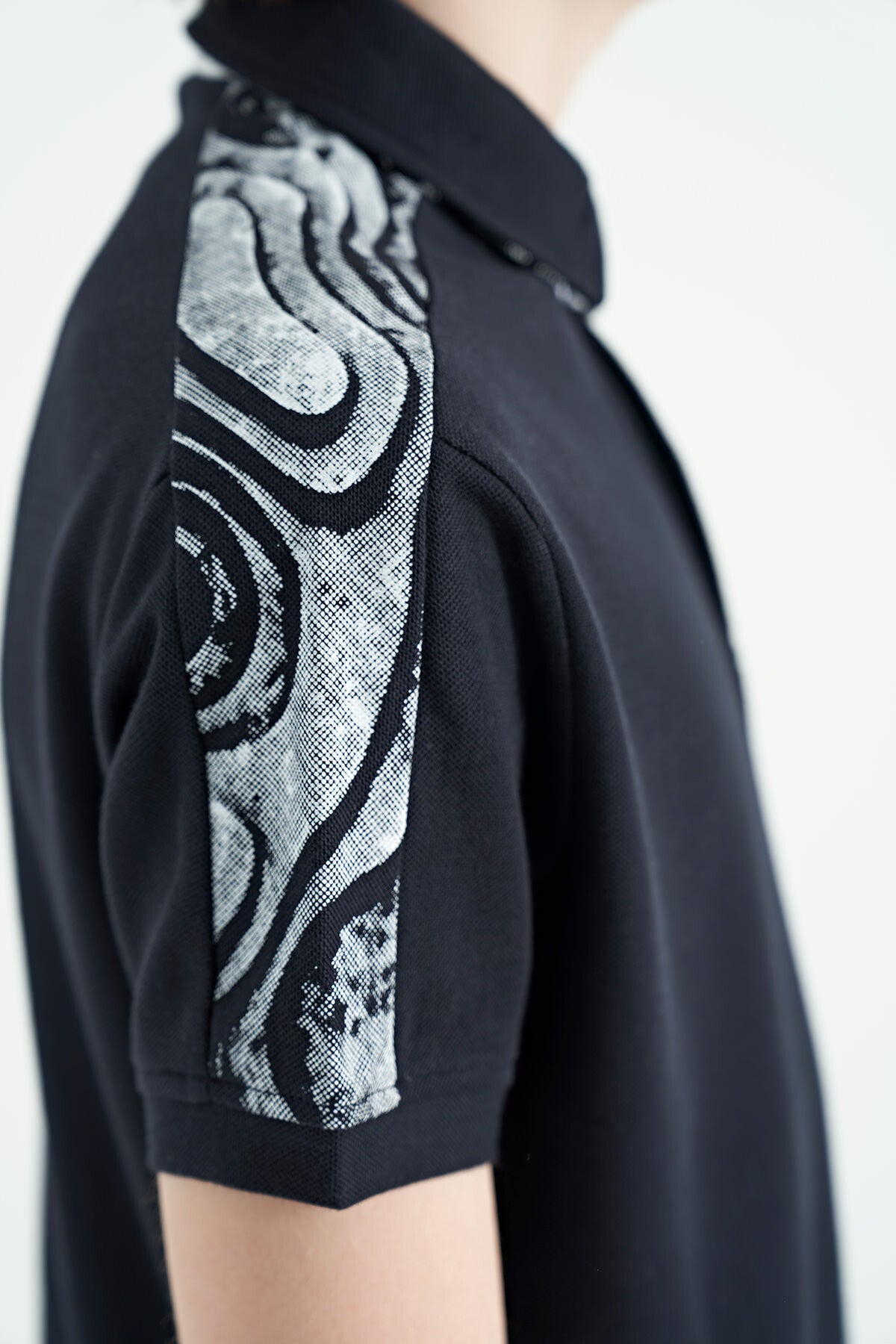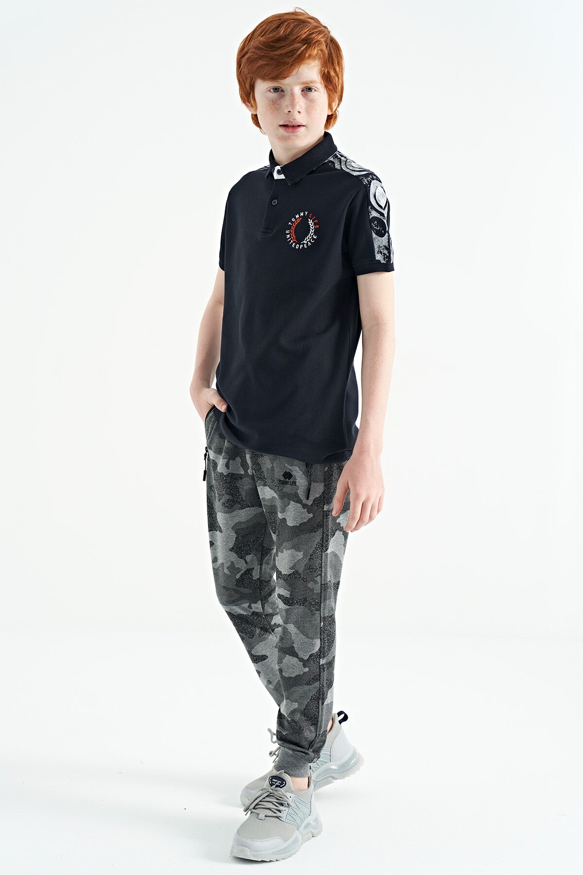Navy Blue Print Detailed Polo Collar Standard Fit Boys' T-Shirt - 11166