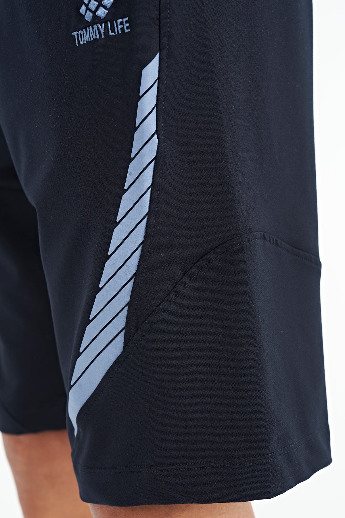 Navy Blue Printed Detail Embroidered Logo Regular Fit Men's Shorts - 81252