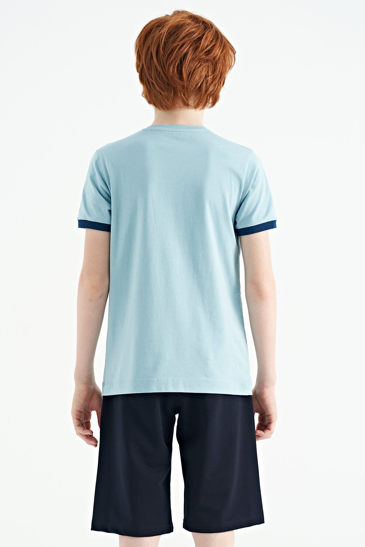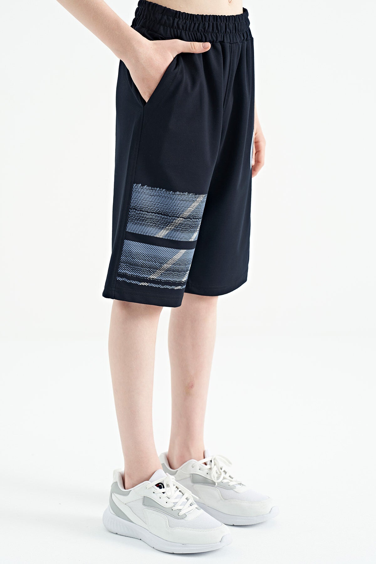 Navy Blue Printed Detailed Laced Standard Fit Boys Shorts - 11125