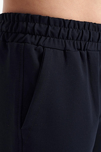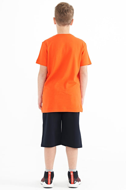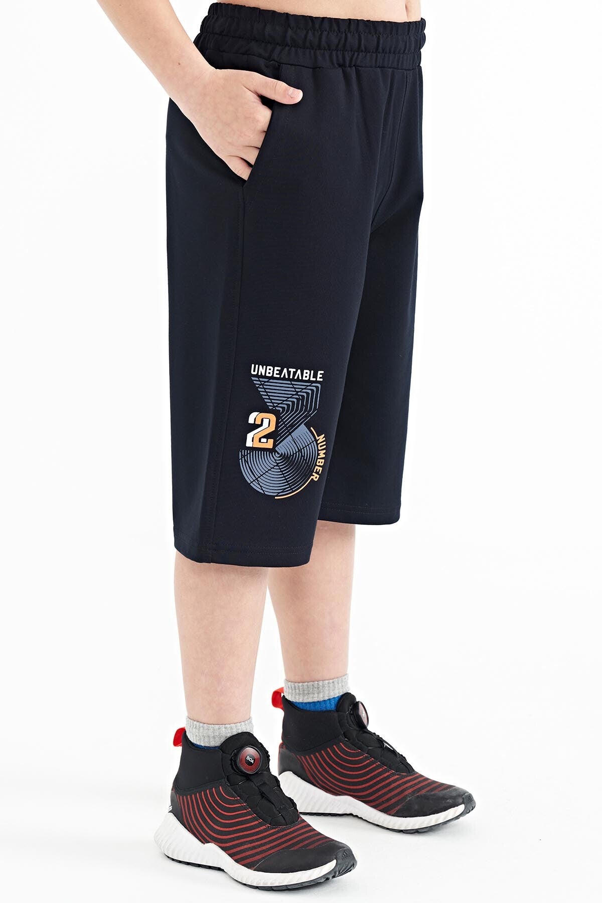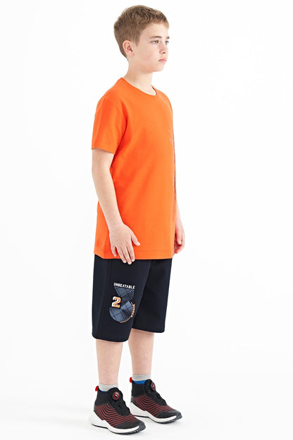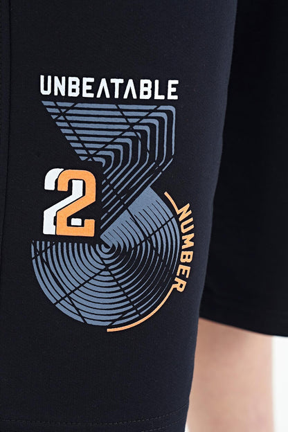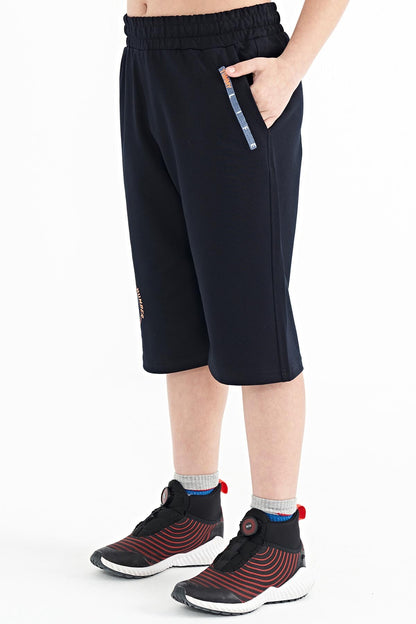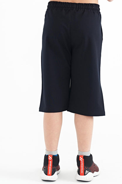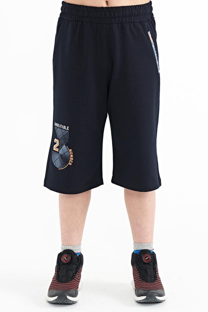Navy Blue Printed Detailed Laced Standard Fit Boys Shorts - 11128