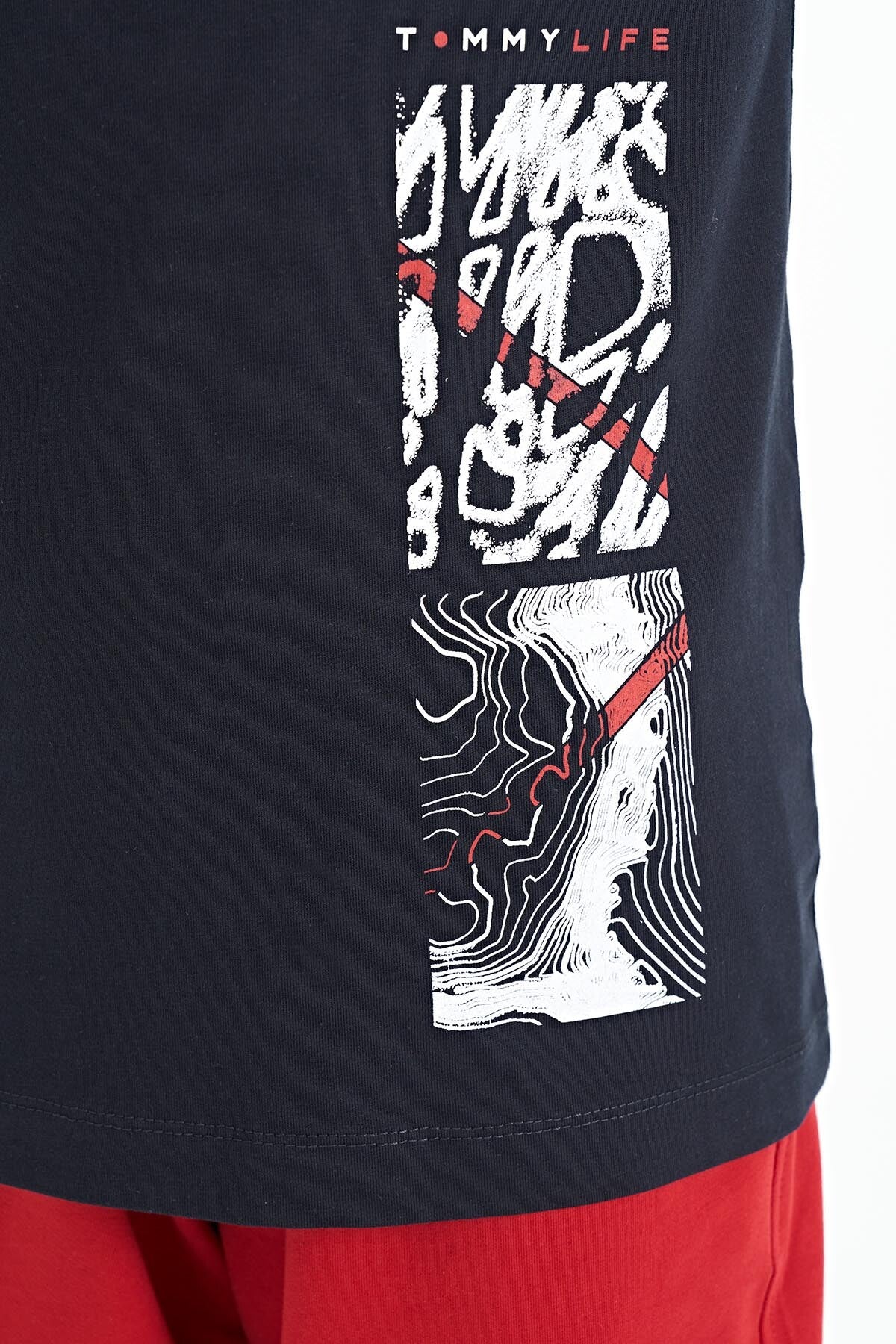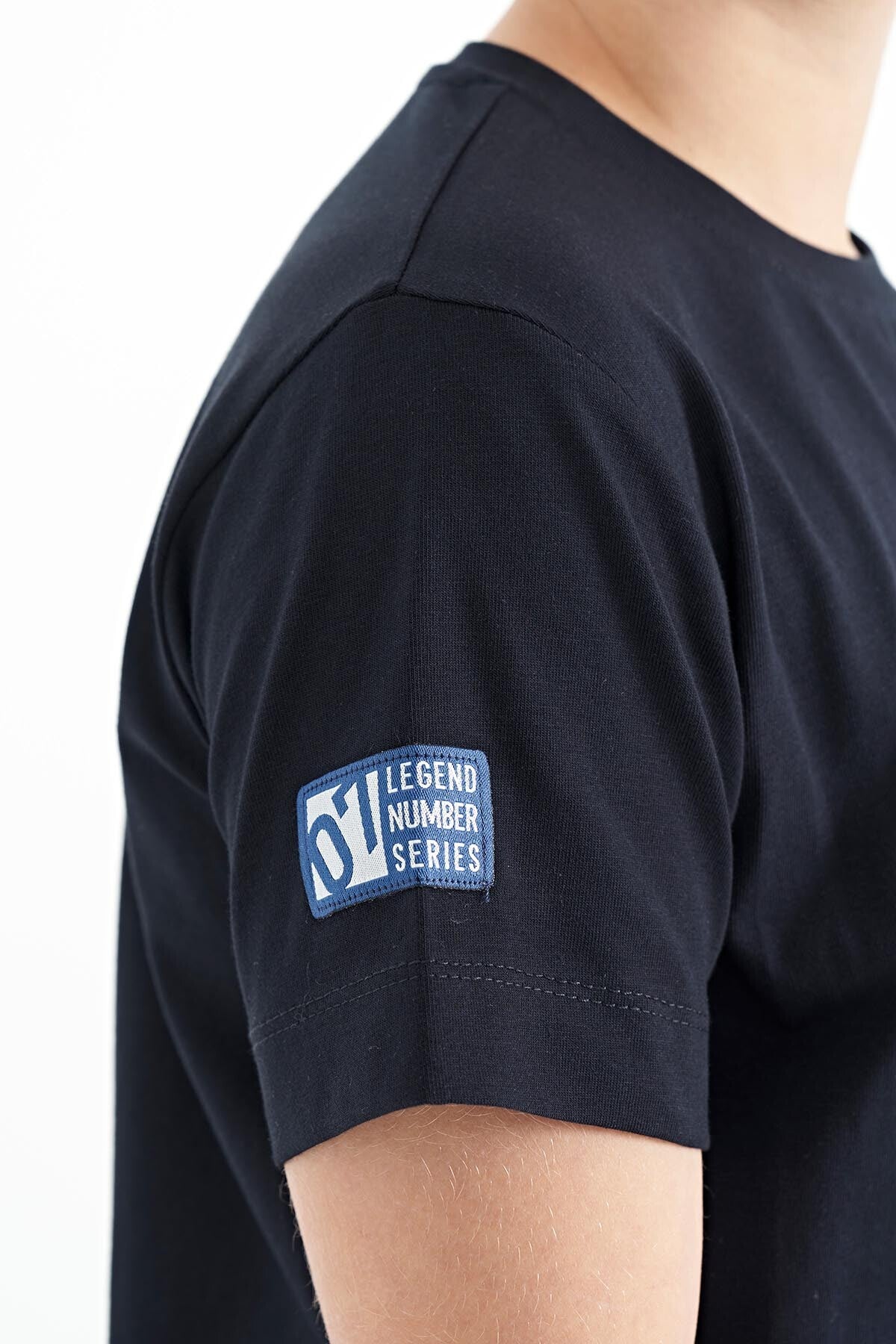 Navy Blue Printed Detailed O Collar Standard Fit Boys T-Shirt - 11104