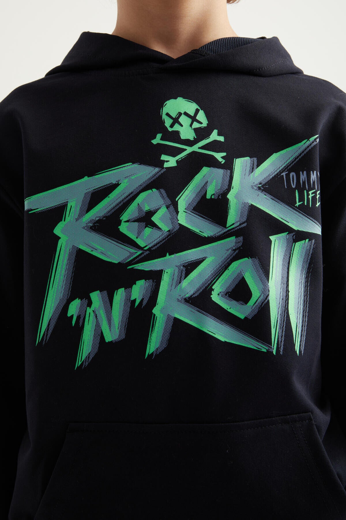 Navy Blue Printed Kangaroo Pocket Hooded Standard Fit Boys' Sweatshirt - 11002