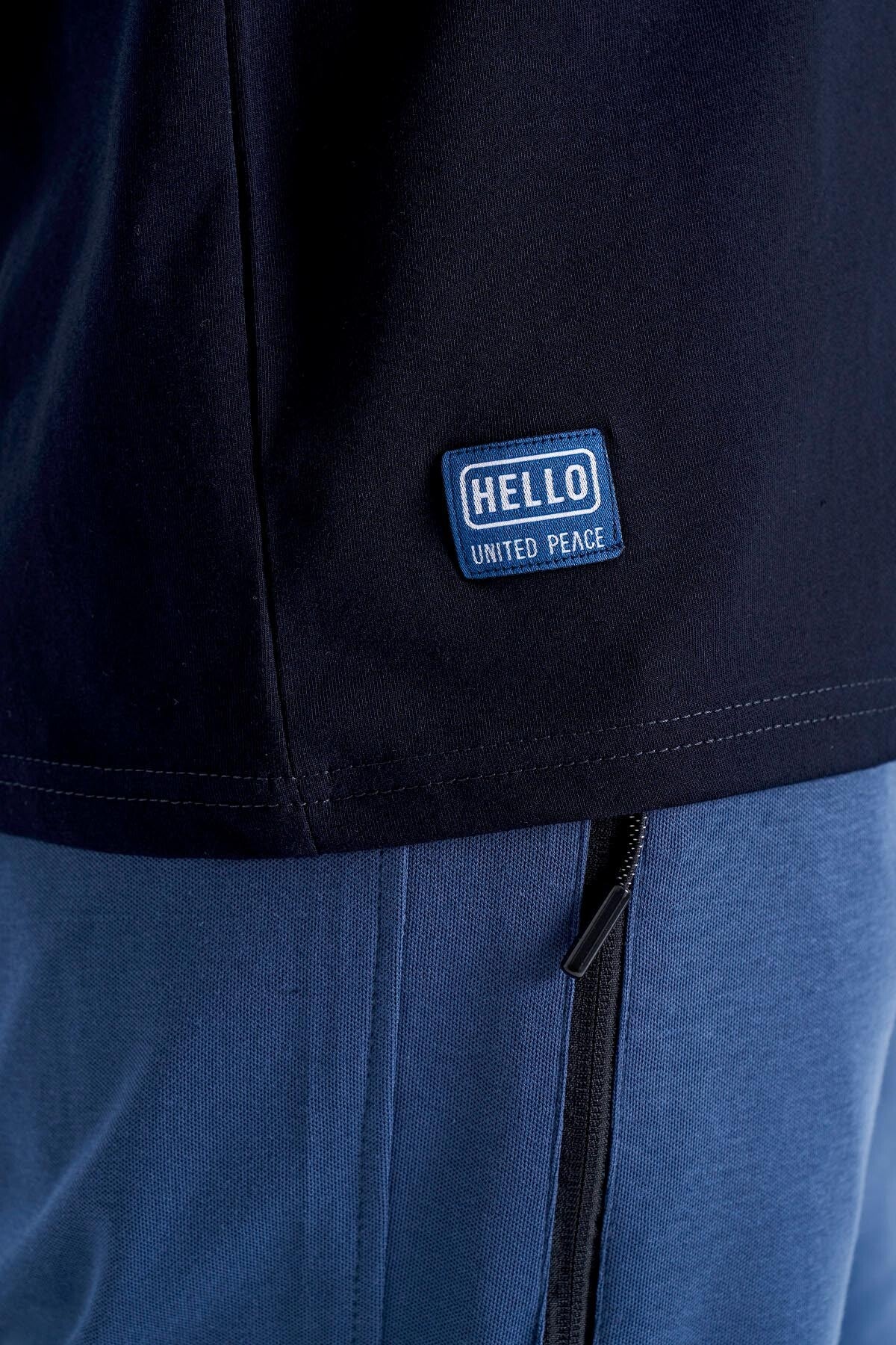 Navy Blue Printed Lettering Pattern Standard Fit O Collar Men's T-Shirt - 88172