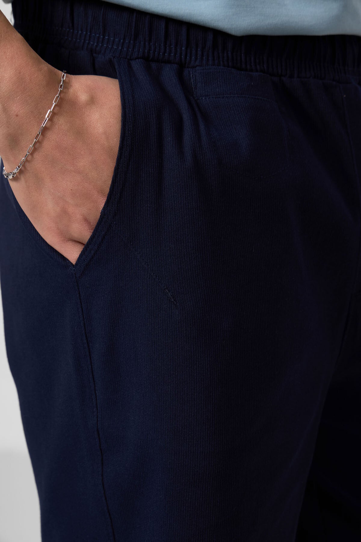Navy Blue Standard Fit Woven Lightly Stretch Chino Men's Shorts - 81290