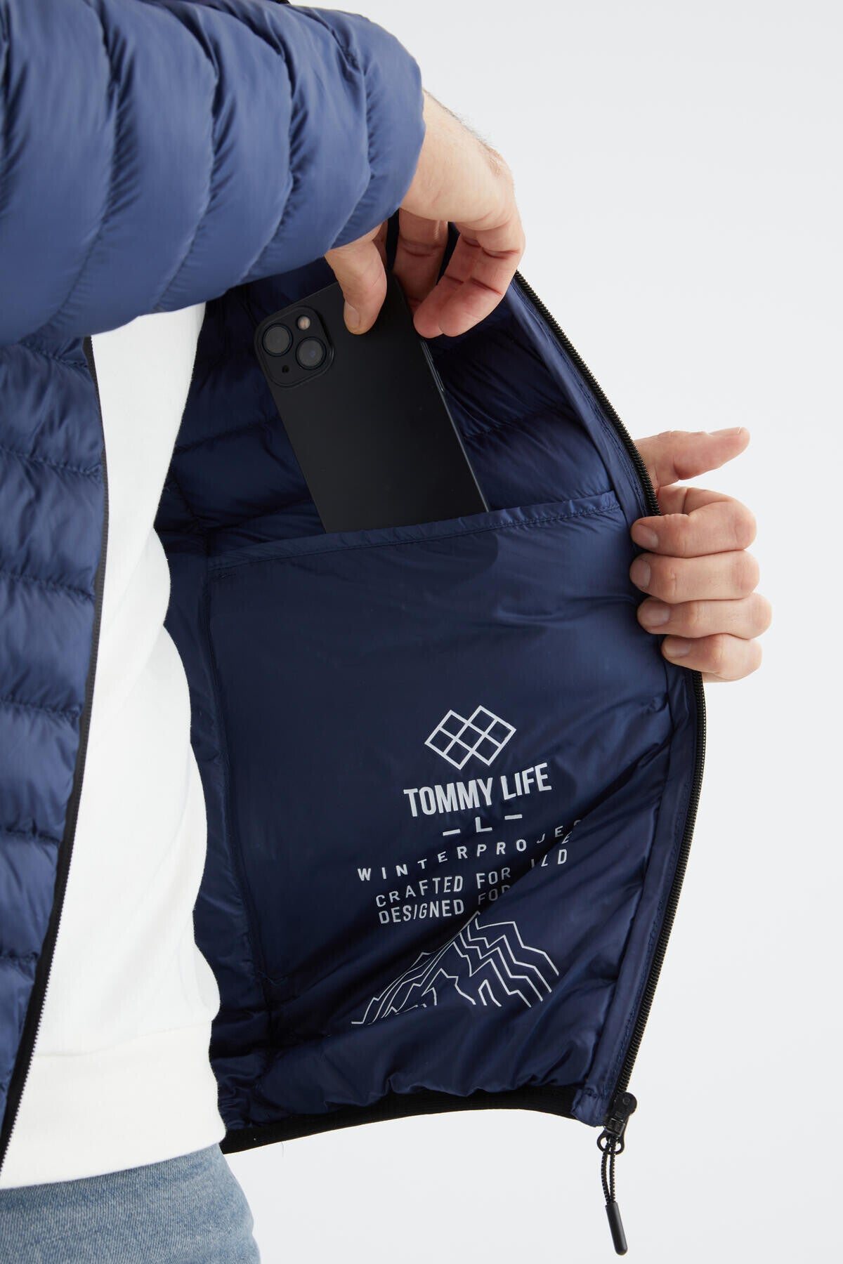 Navy Blue Zippered Standard Fit Cold-Resistant Men's Puffer Jacket - 88166