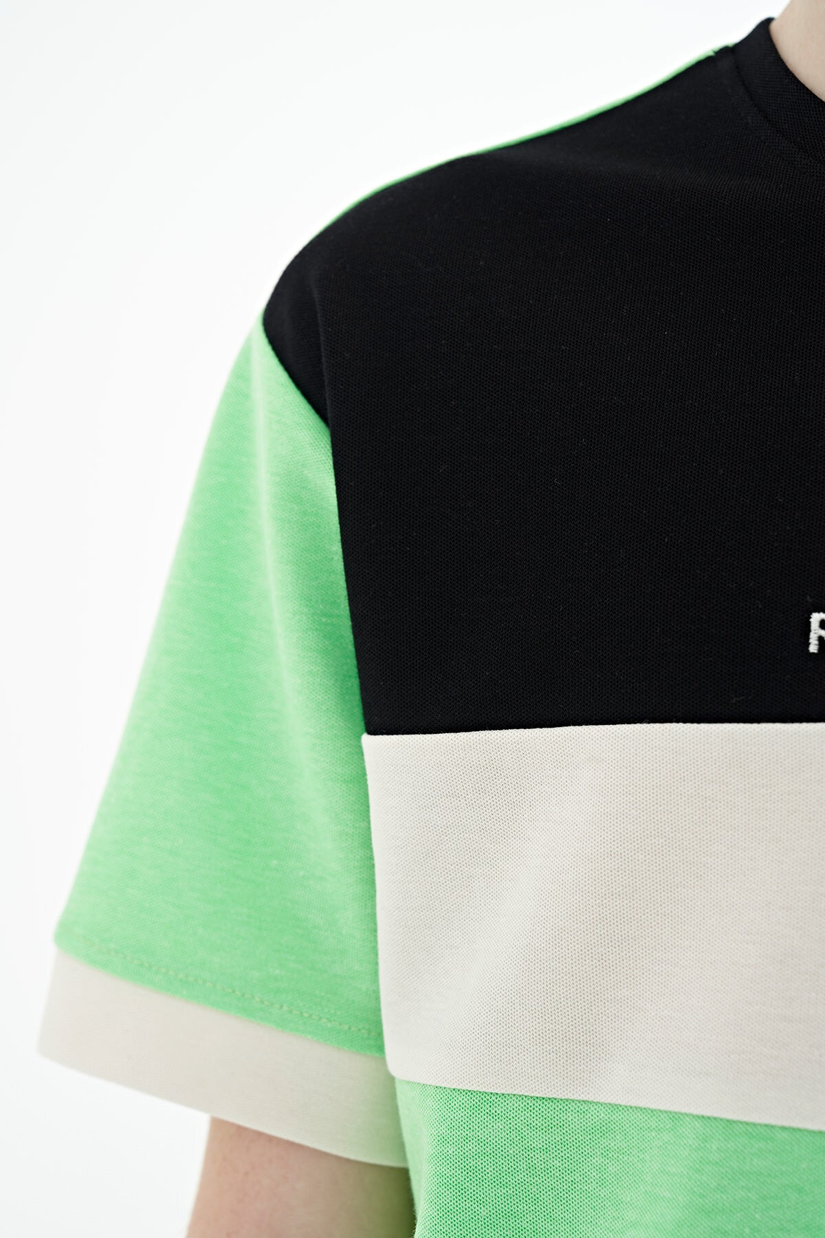 Neon Green Color Gradient Embroidered Oversize Boys T-Shirt - 11159