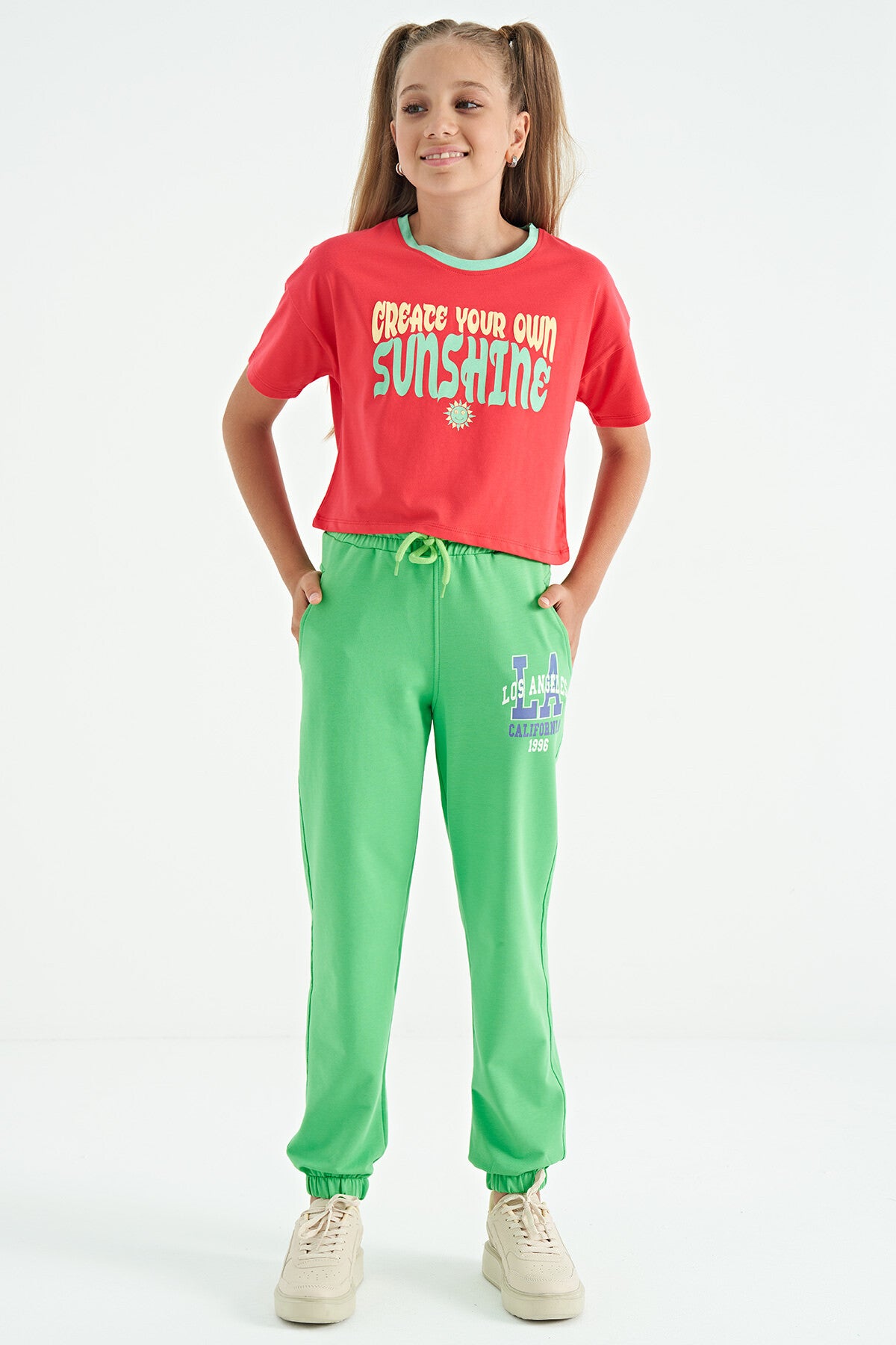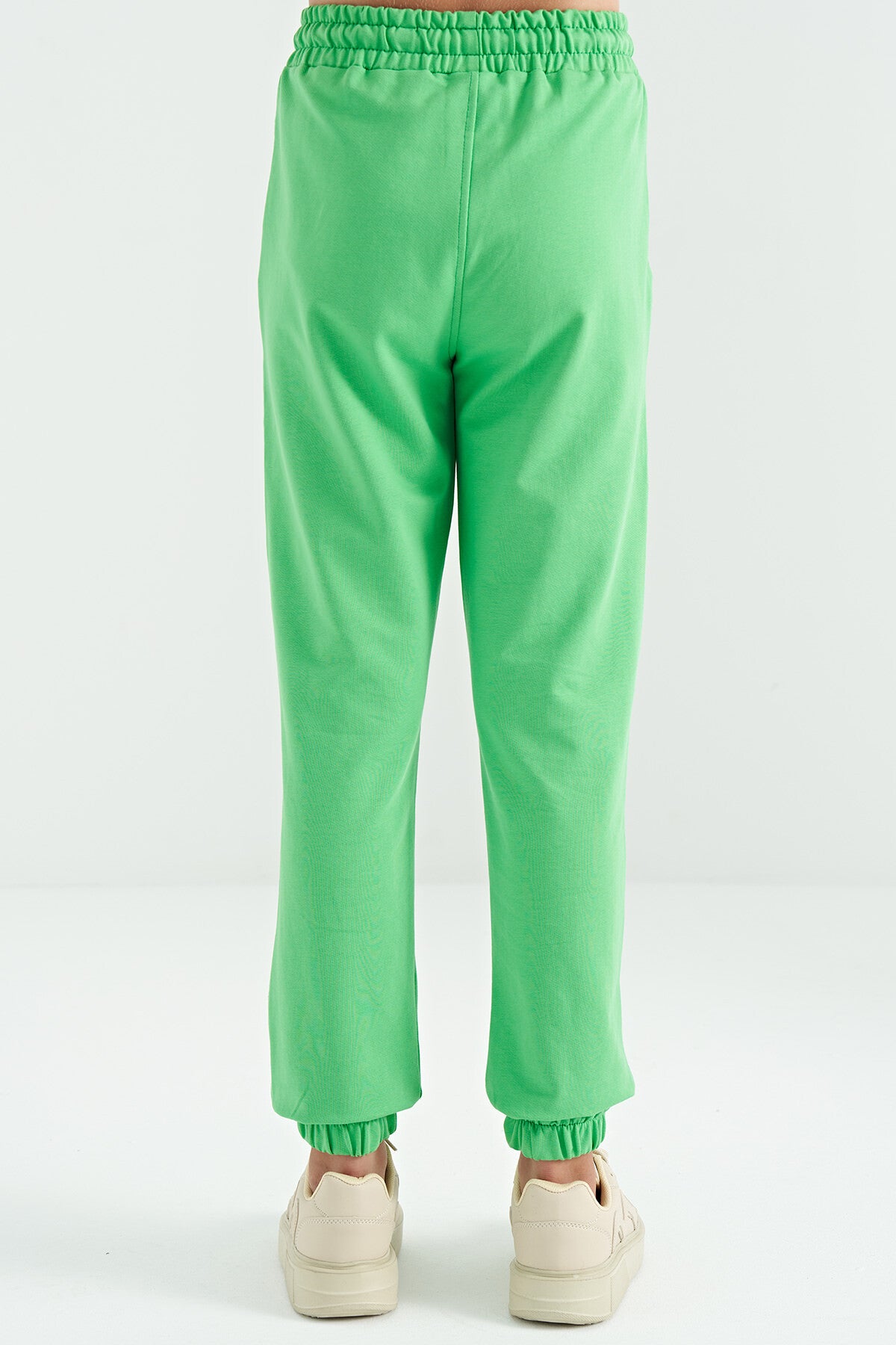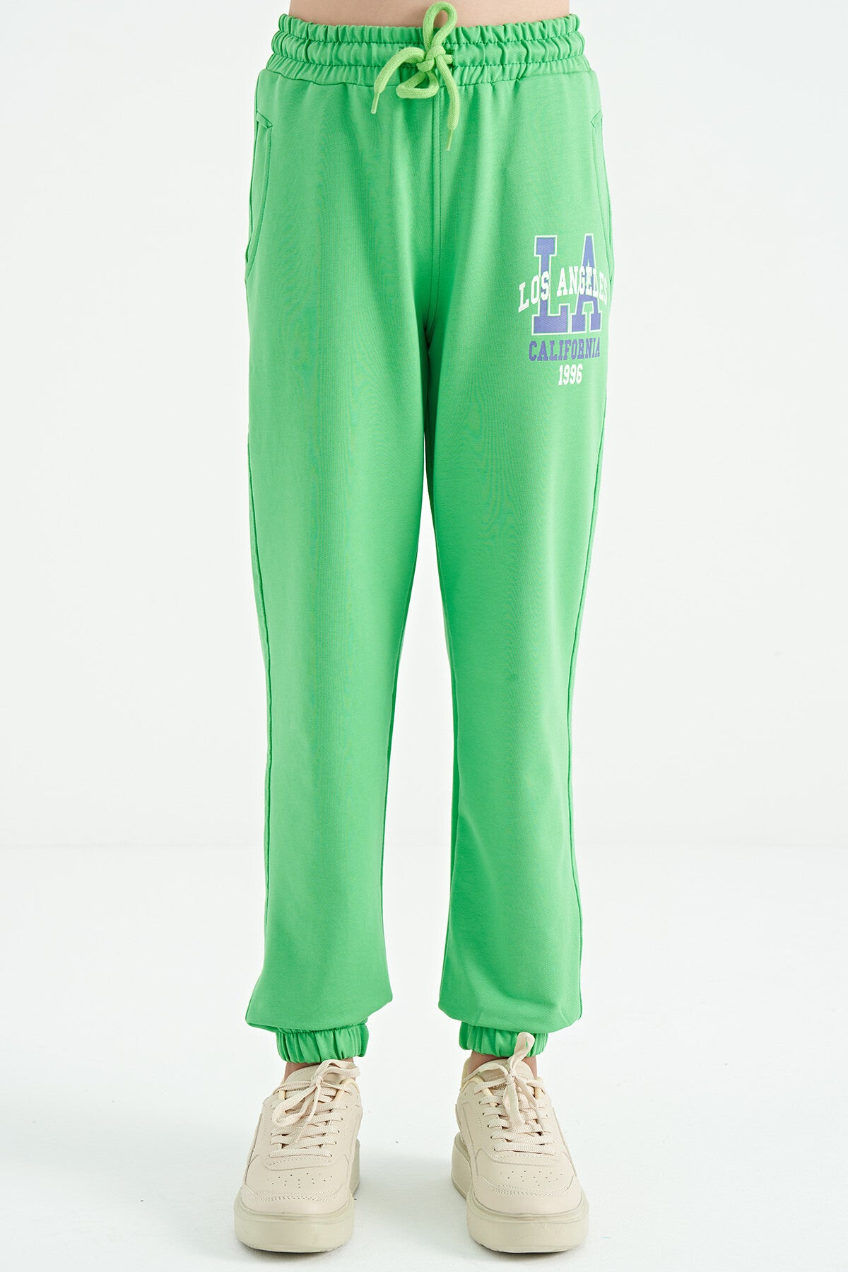 Neon Green Embroidered Lettering Standard Fit Jogger Girls' Tracksuit Bottom - 75120