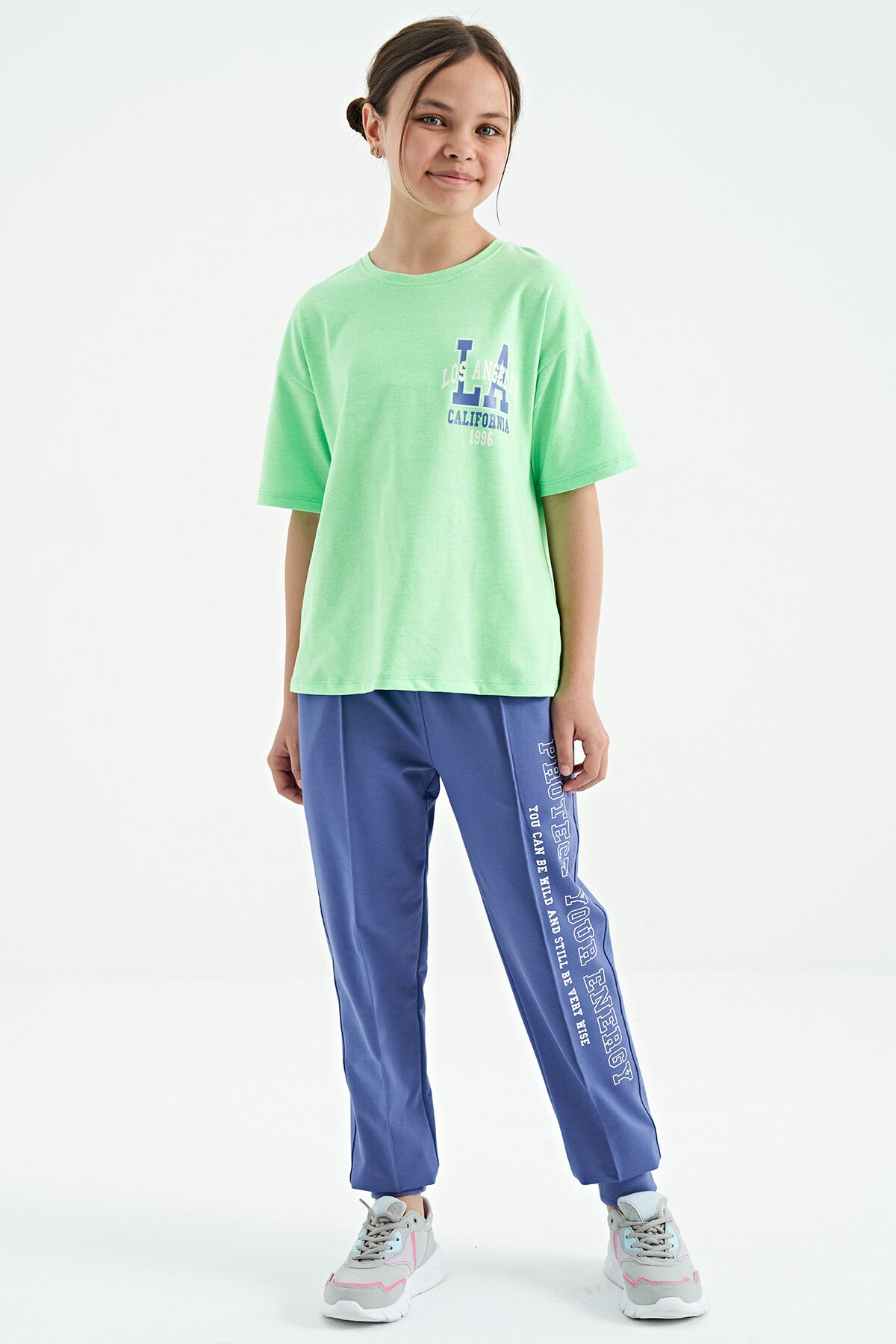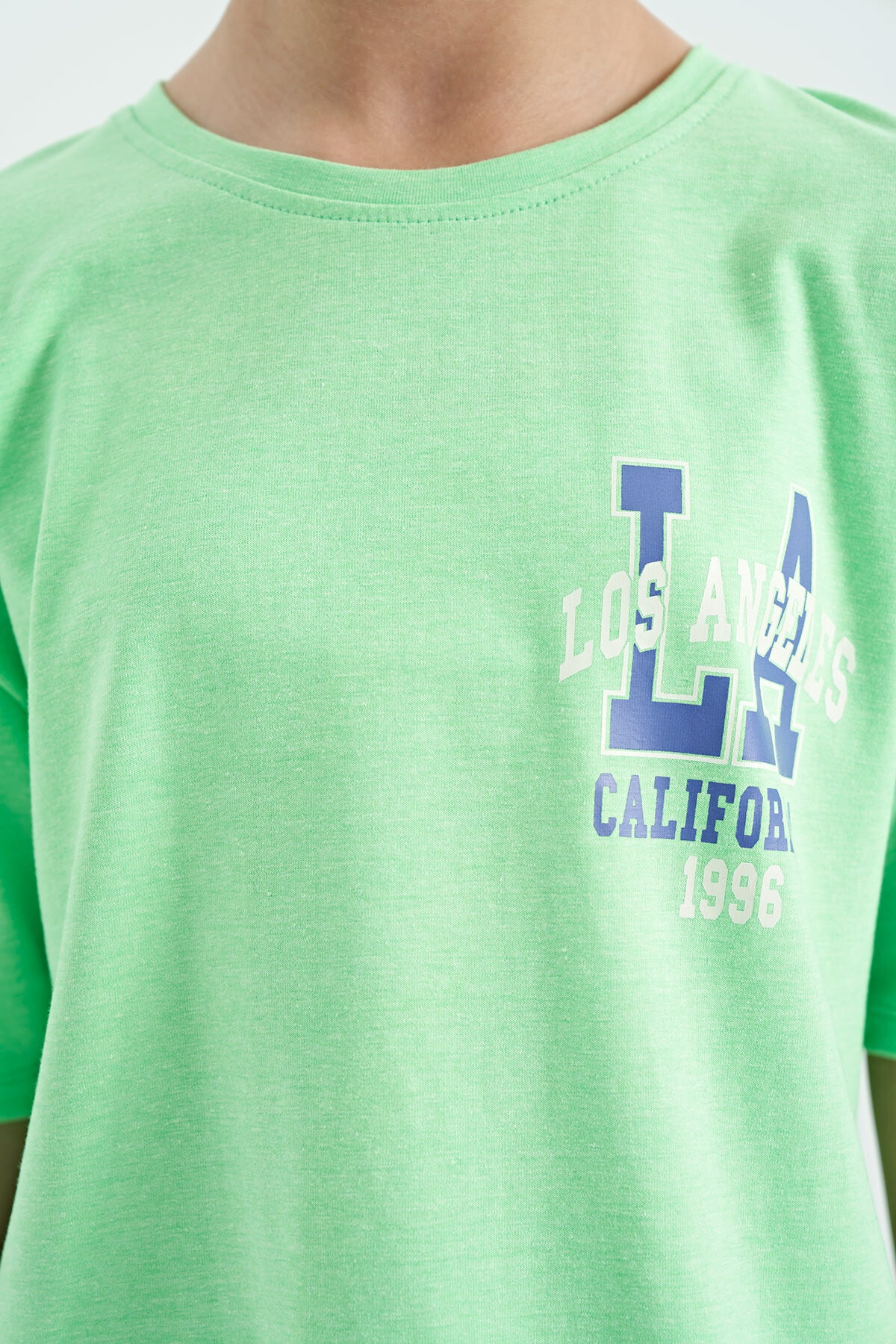 Neon Green Front Back Print O Collar Oversize Short Sleeve Girls T-Shirt - 75127