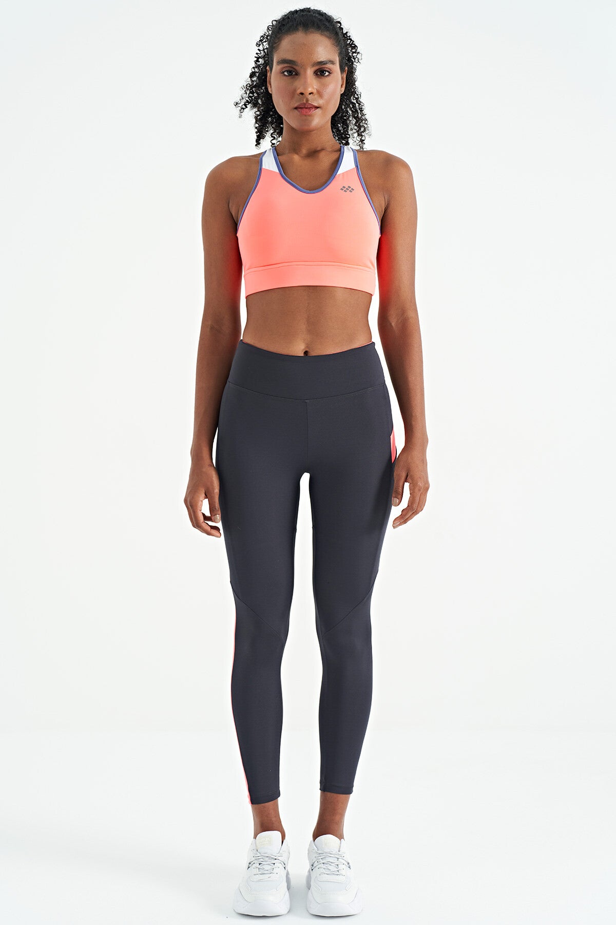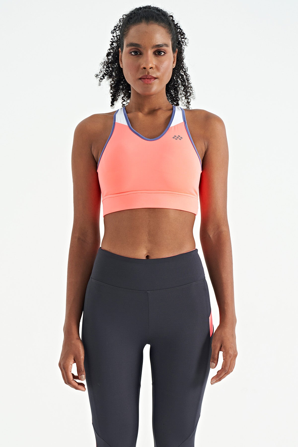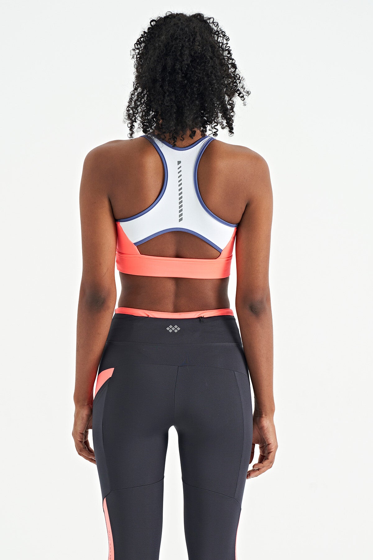 Neon Pink Color Block Back Print Detailed Slim Fit Women's Bustier - 97253
