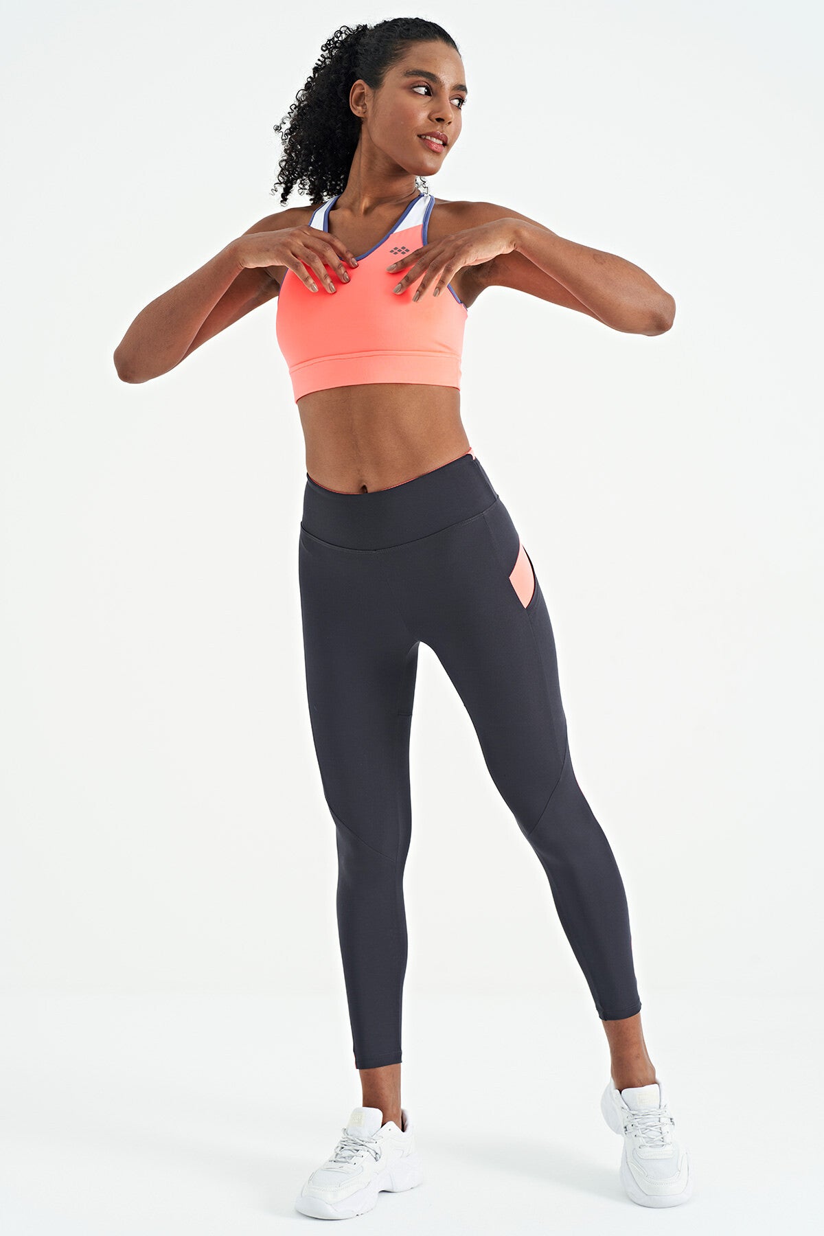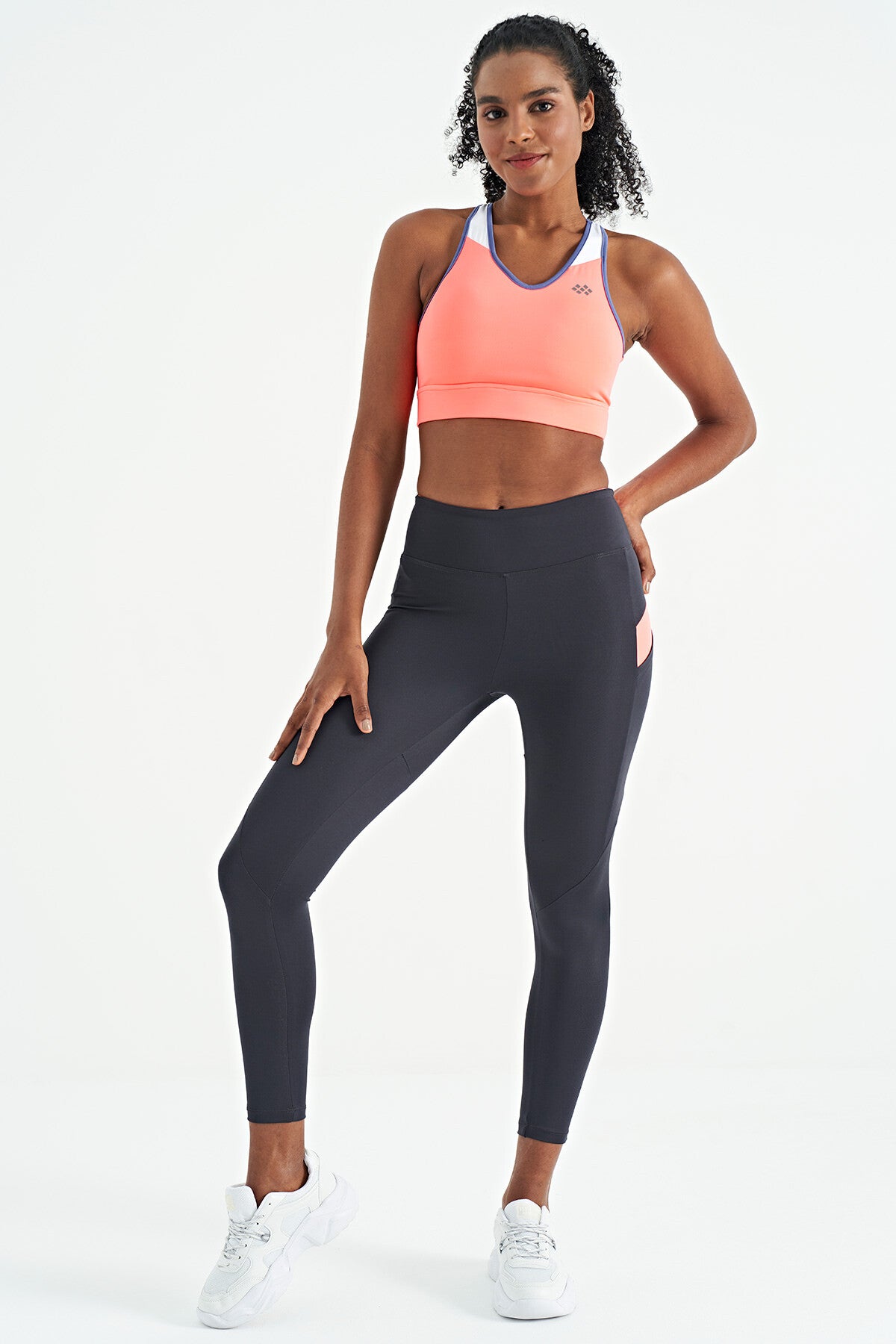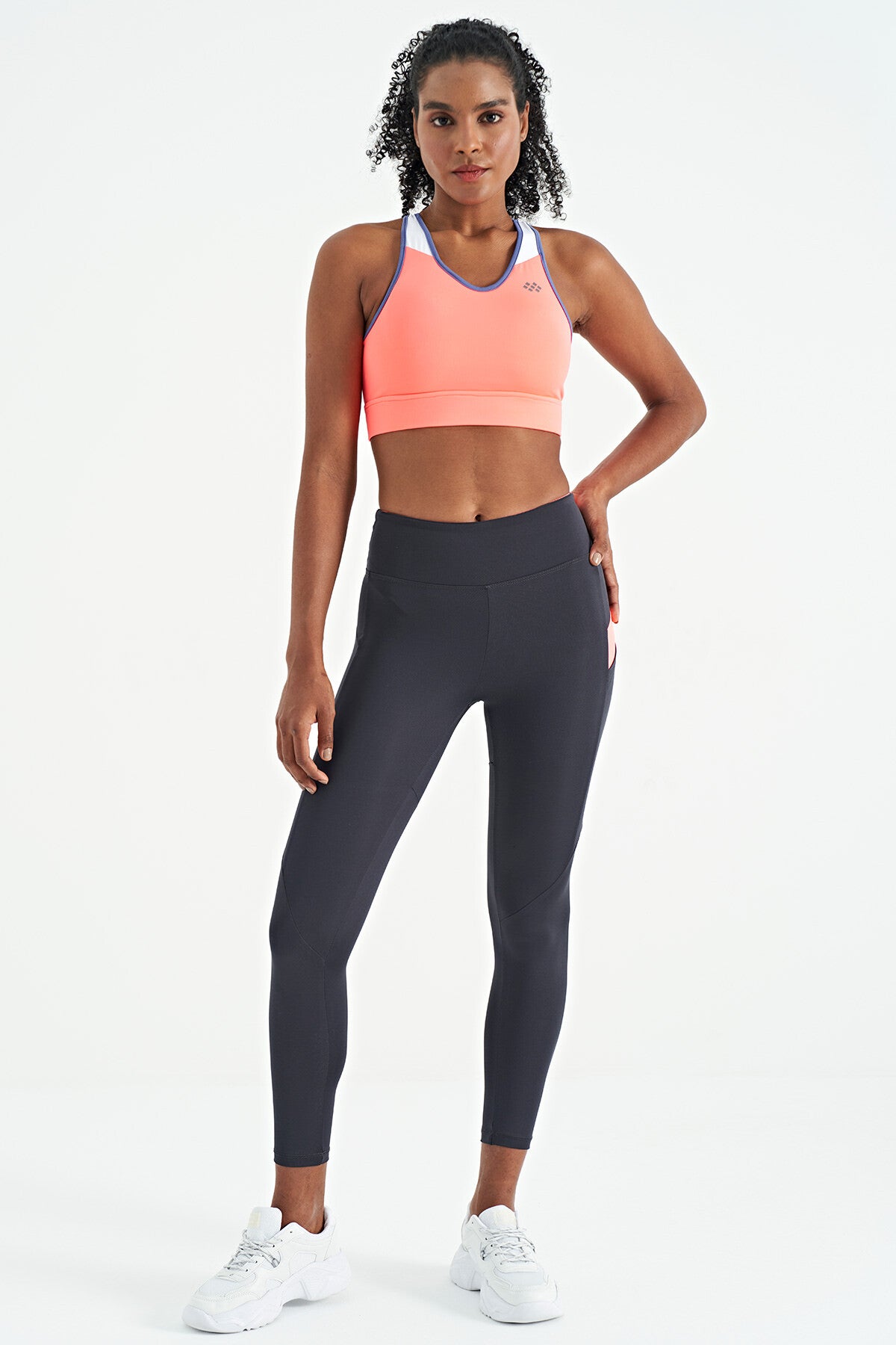 Neon Pink Color Block Back Print Detailed Slim Fit Women's Bustier - 97253