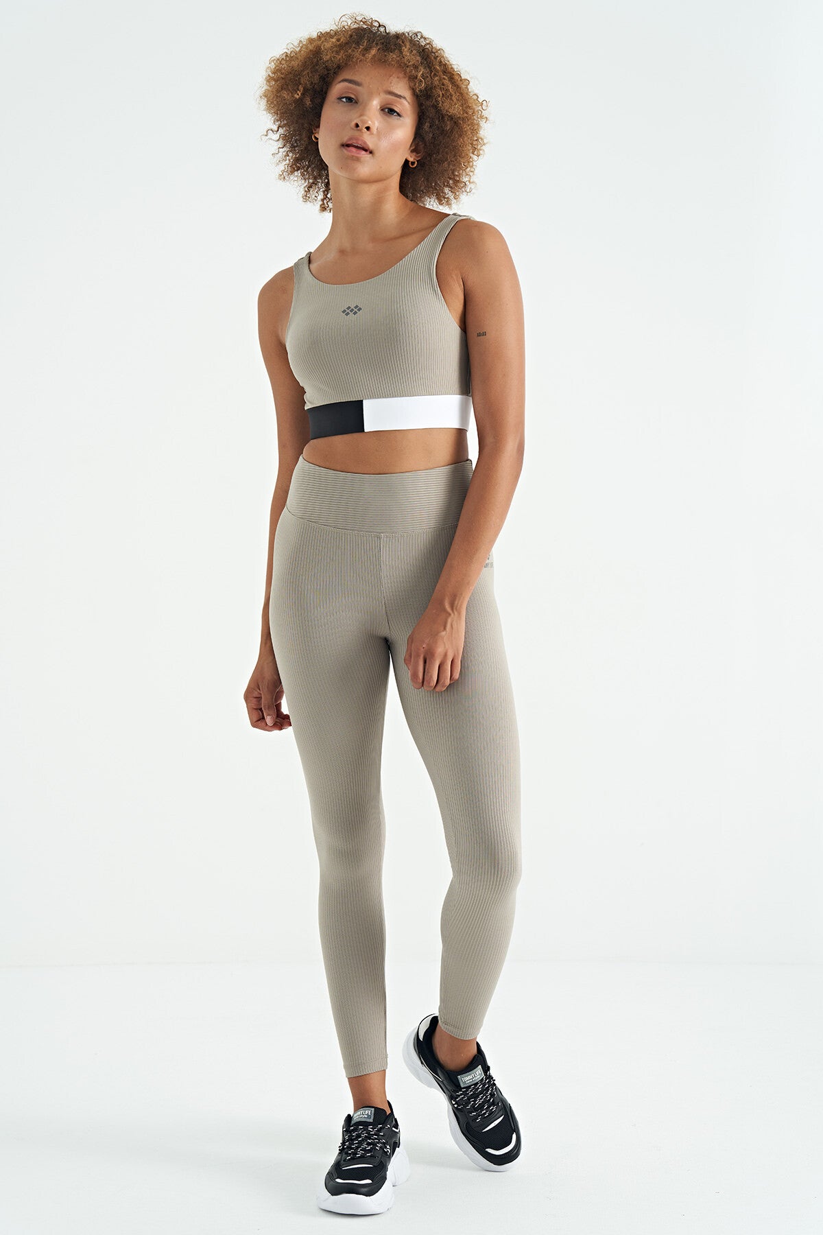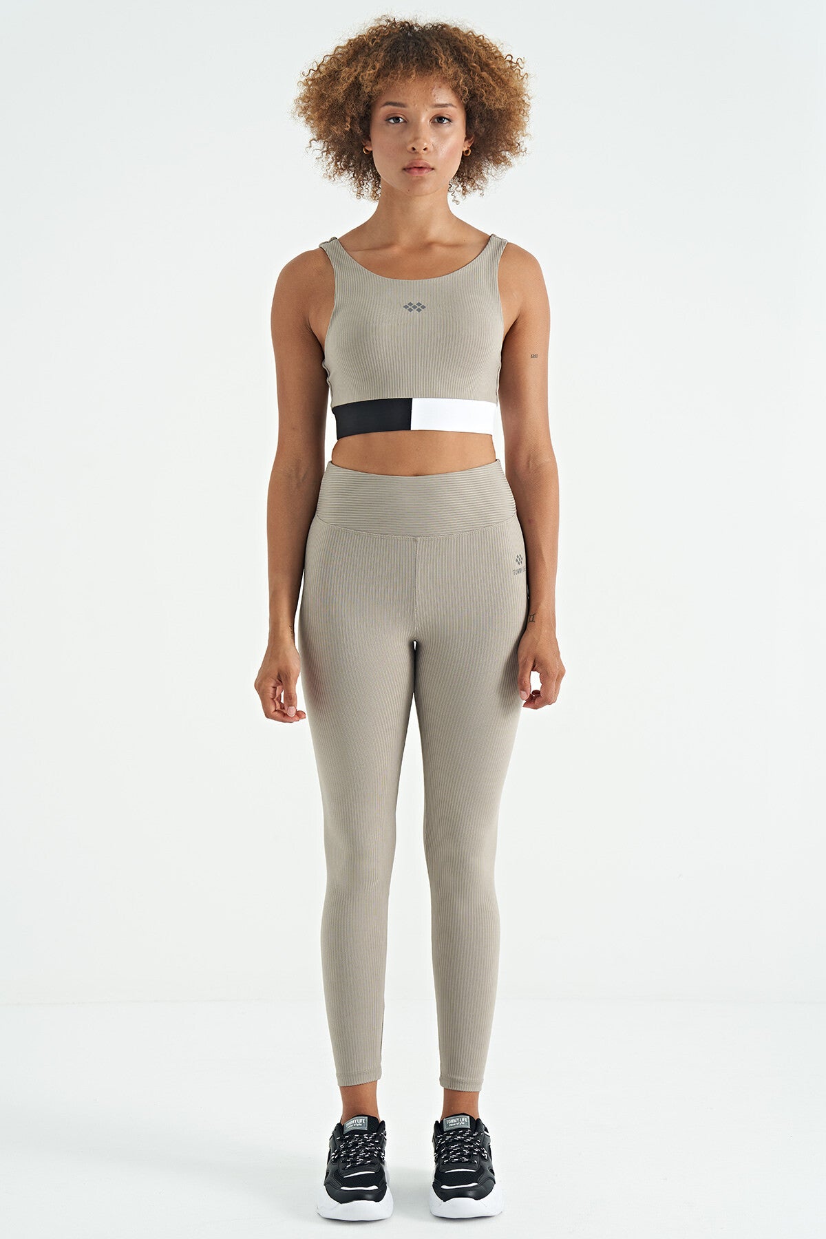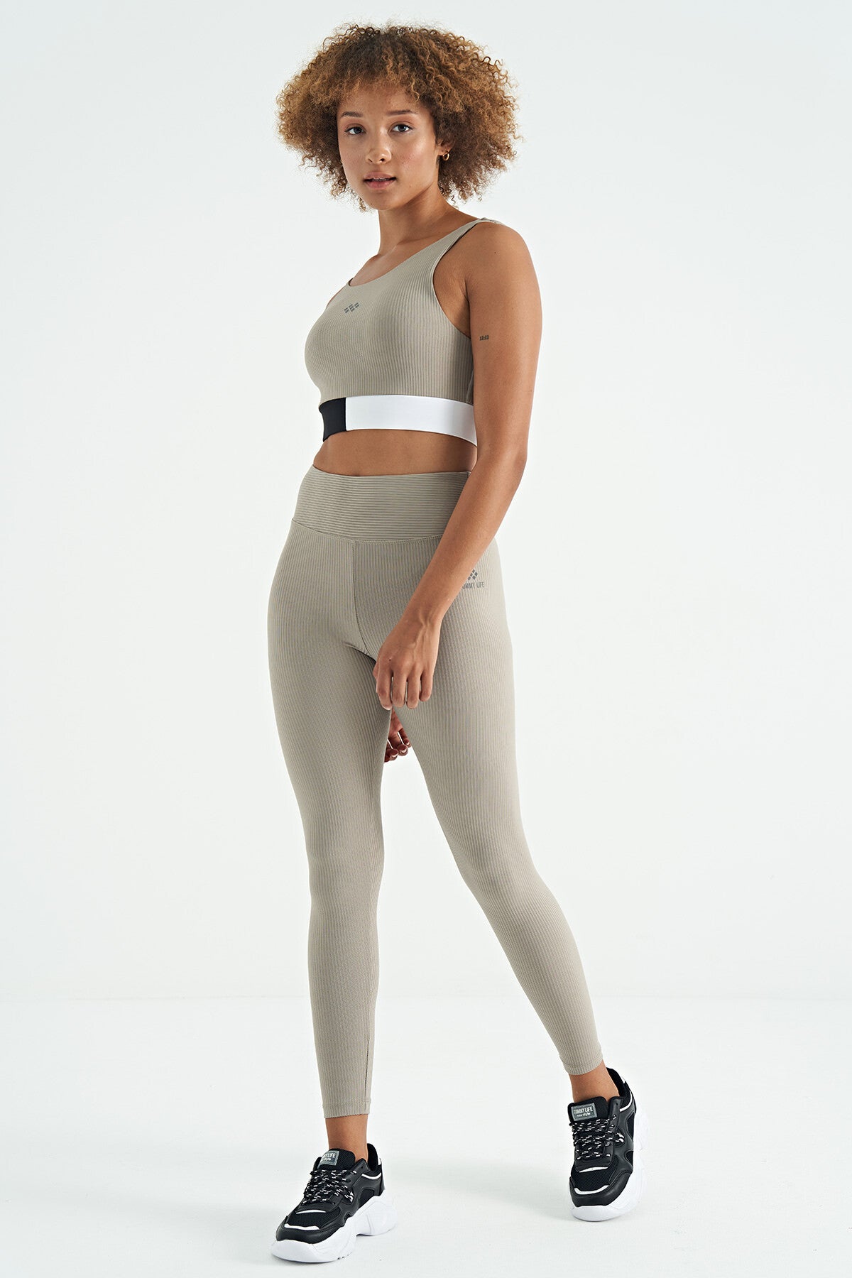 Olive Green Color Block Logo Print Slim Fit Striped Women's Bustier - 97275