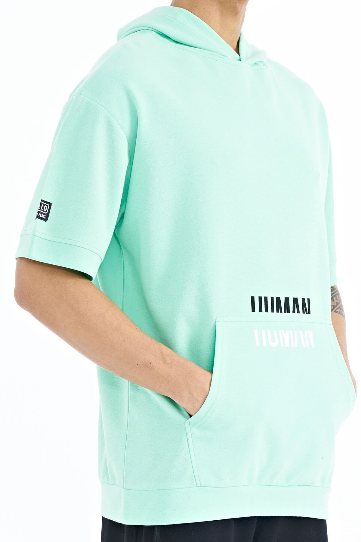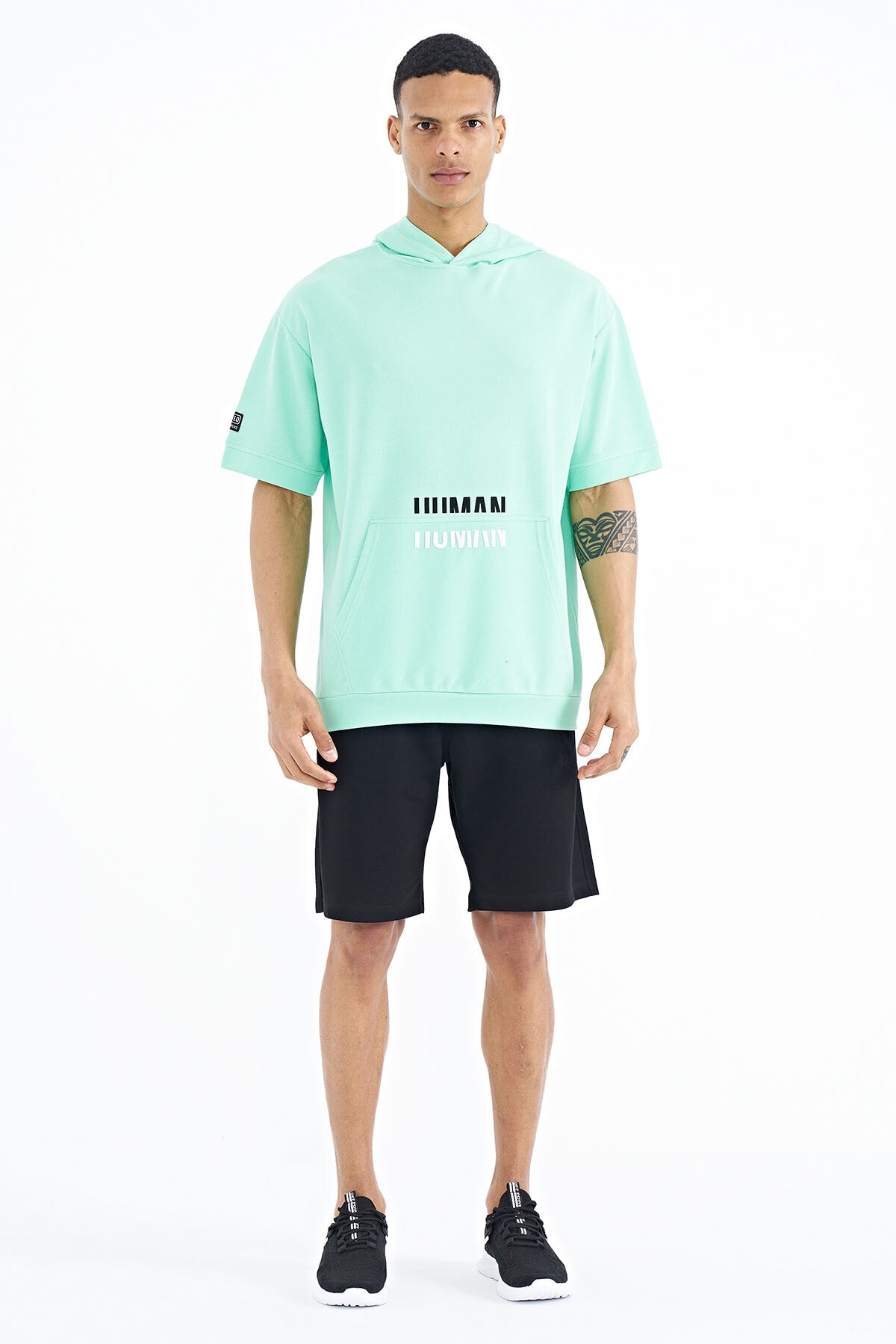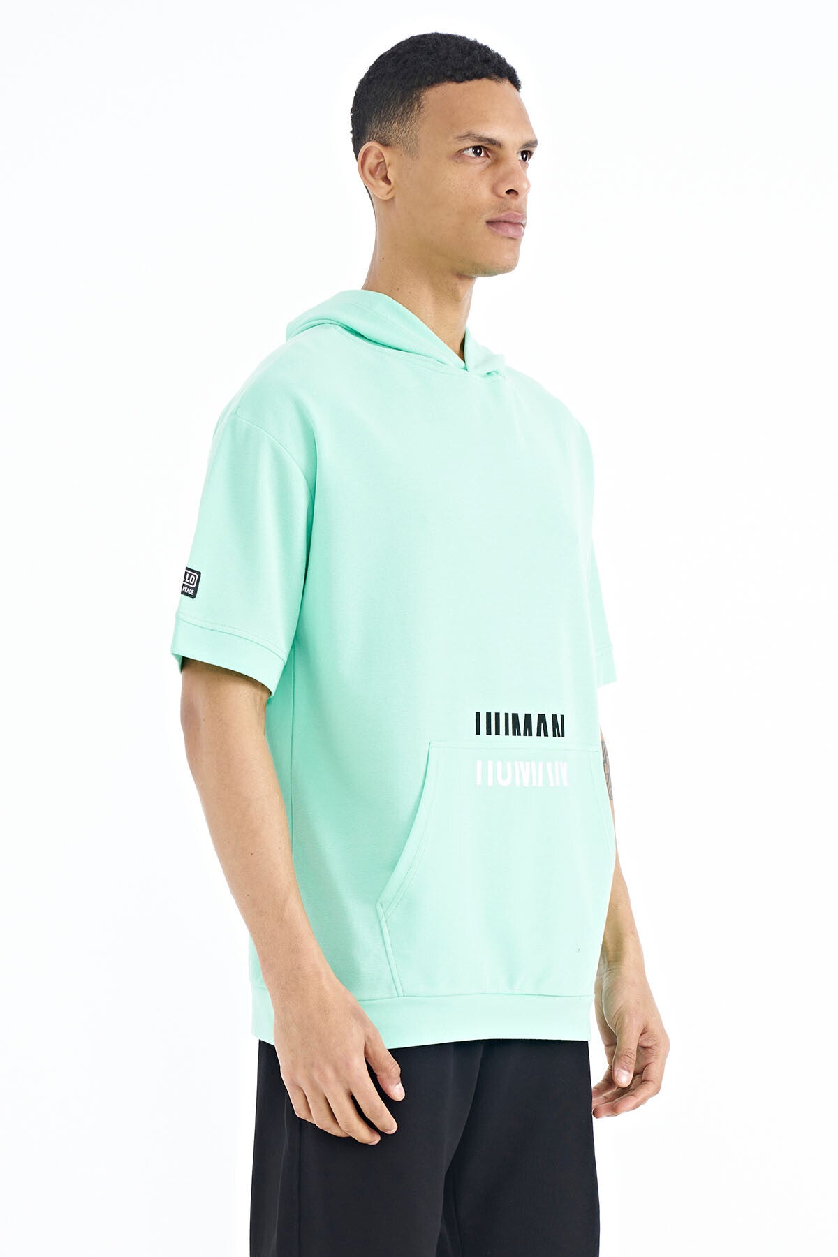 Olive Green Kangaroo Pocket Embroidered Hooded Men's T-Shirt - 88195