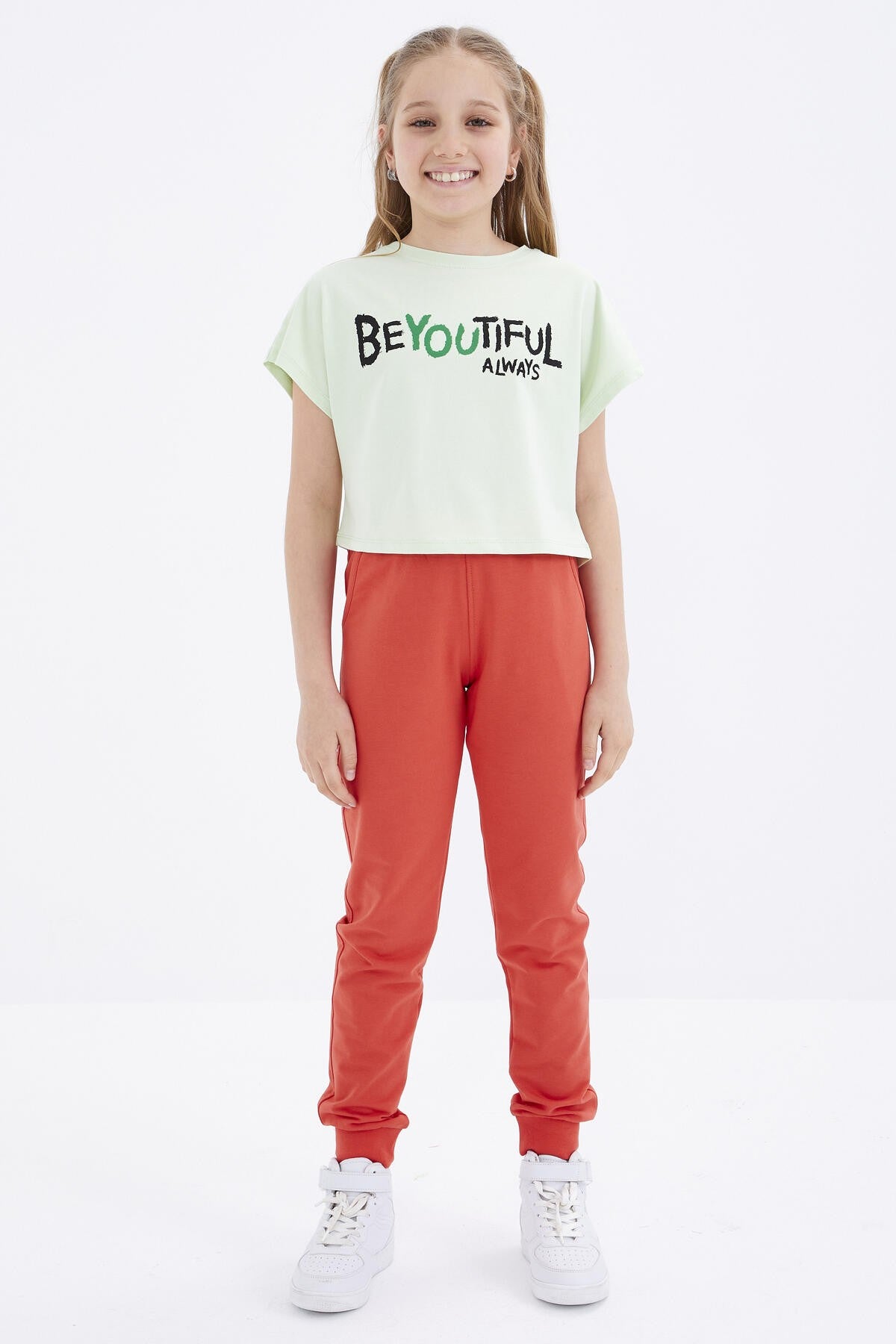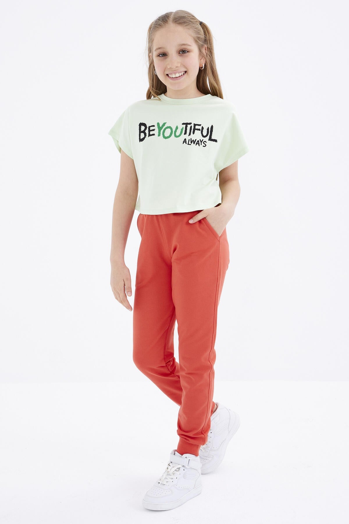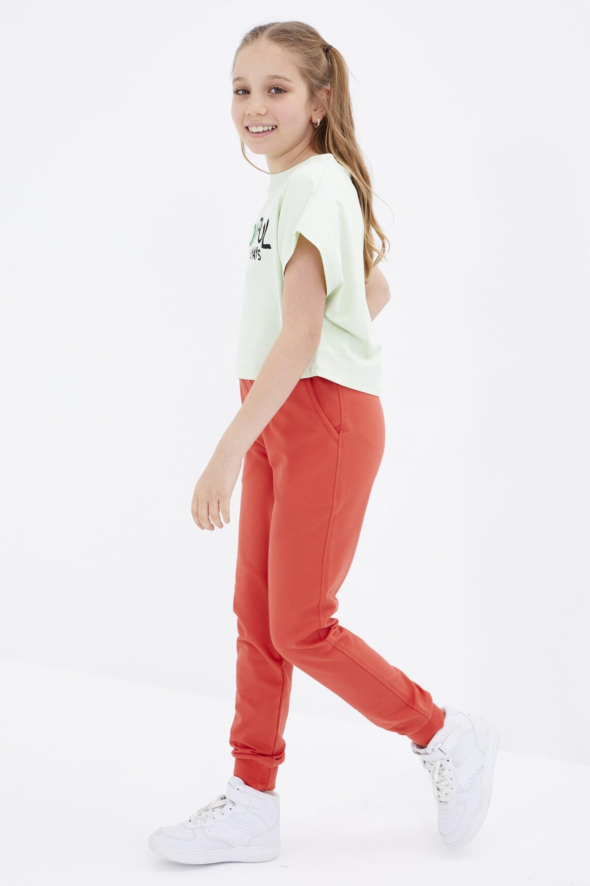 Orange Laced Standard Cut Cuffed Girls' Tracksuit Bottom - 75049