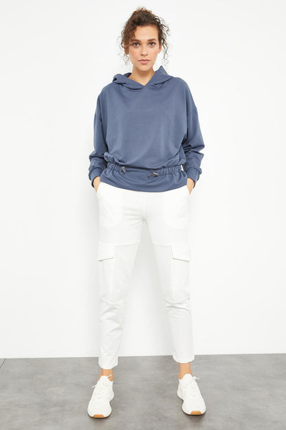 Petrol Blue Pleated Hooded Women's Oversize Sweatshirt - 97159