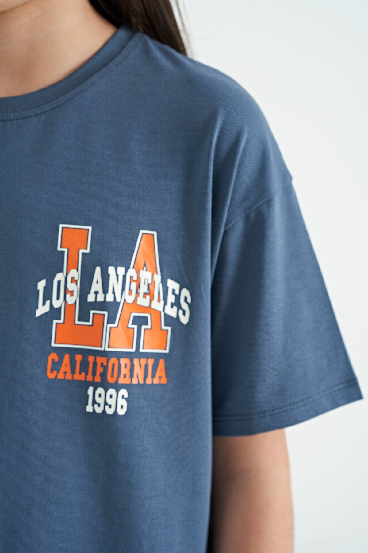 Petrol Front Back Print O Collar Oversize Short Sleeve Girl's T-Shirt - 75127