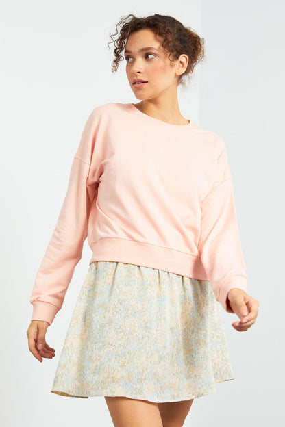 Pink Basic Comfort Fit O Neck Women's Sweatshirt - 97114
