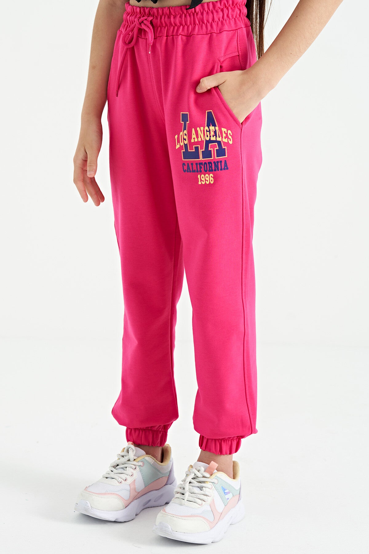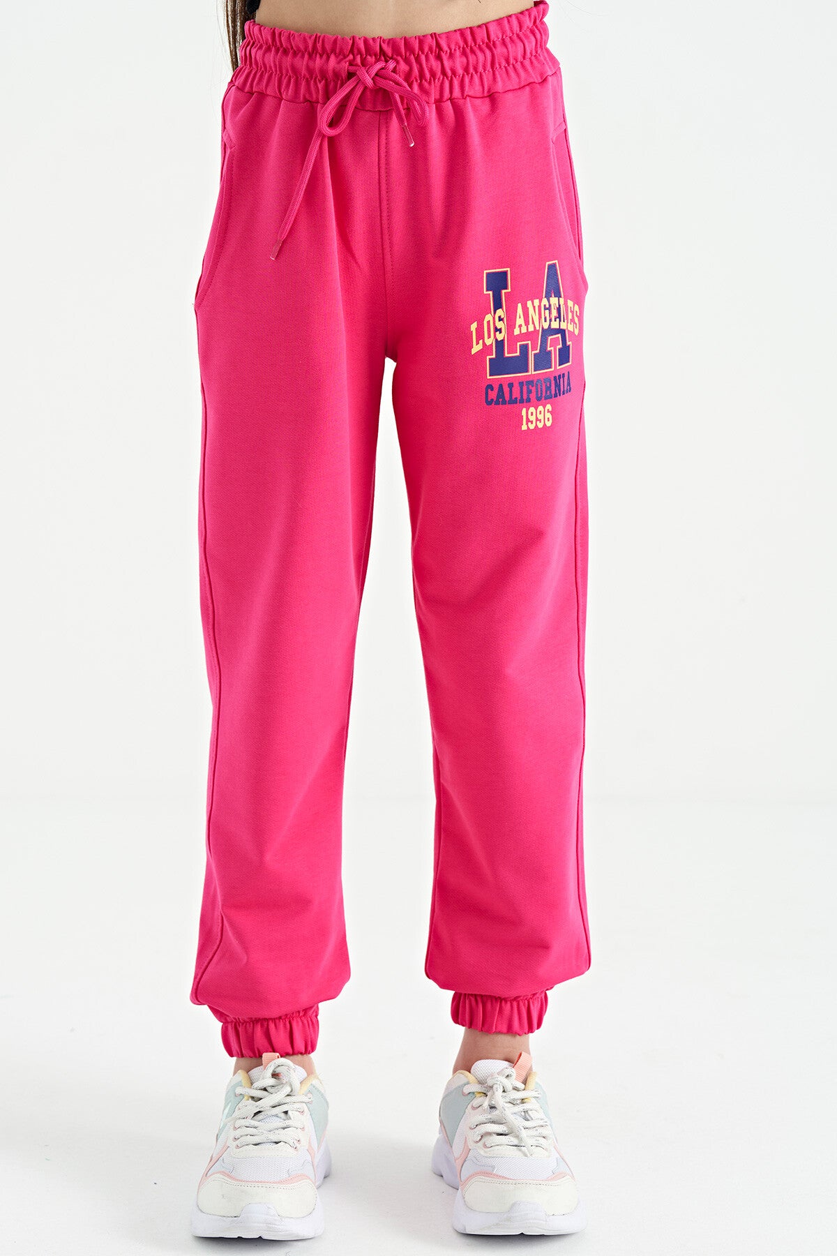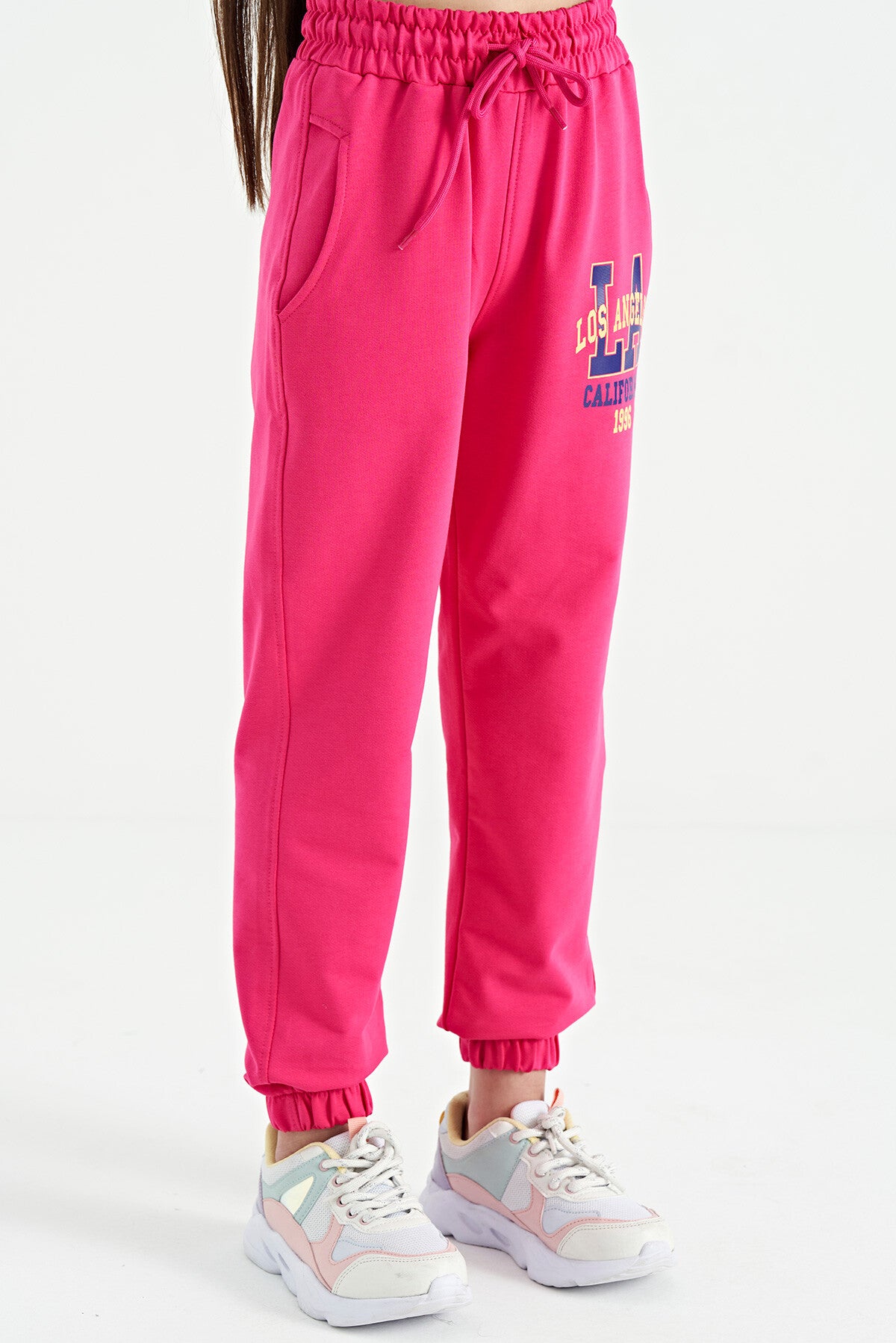 Pink Embroidered Standard Cut Jogger Girls' Tracksuit Bottom - 75120
