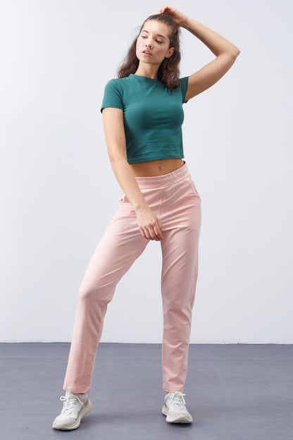 Pink High Waist Comfort Fit Classic Leg Women's Tracksuit Bottom - 94584