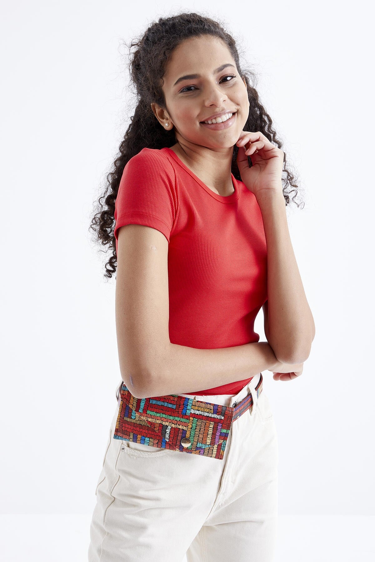 Pomegranate Flower Basic Short Sleeve O Neck Women's T-Shirt - 97202