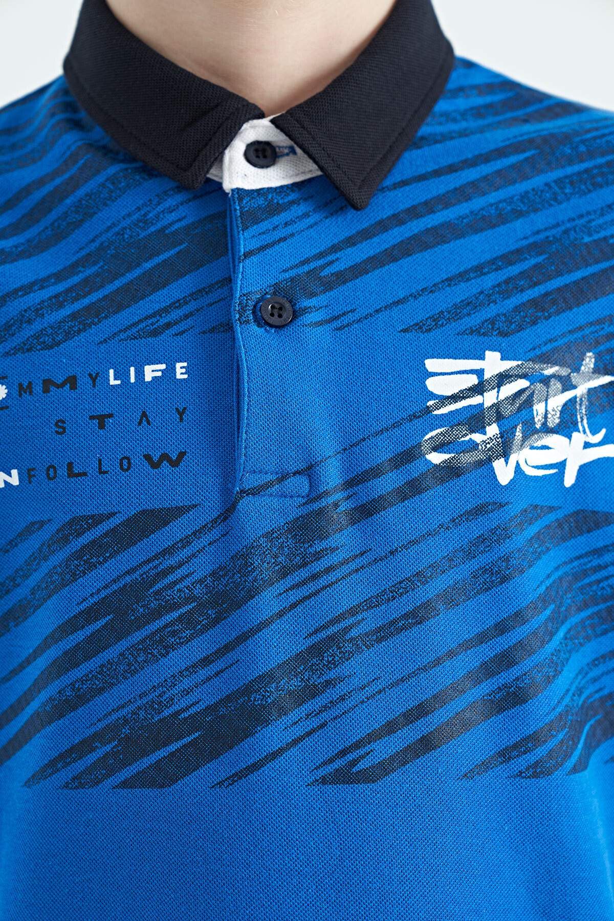 Printed Sash Detailed Polo Collar Standard Cut Boys' T-Shirt - 11161