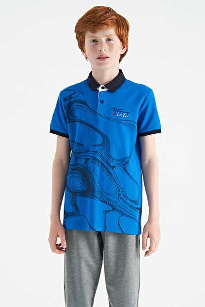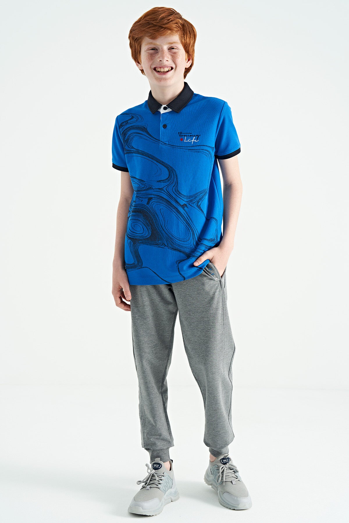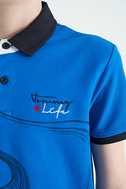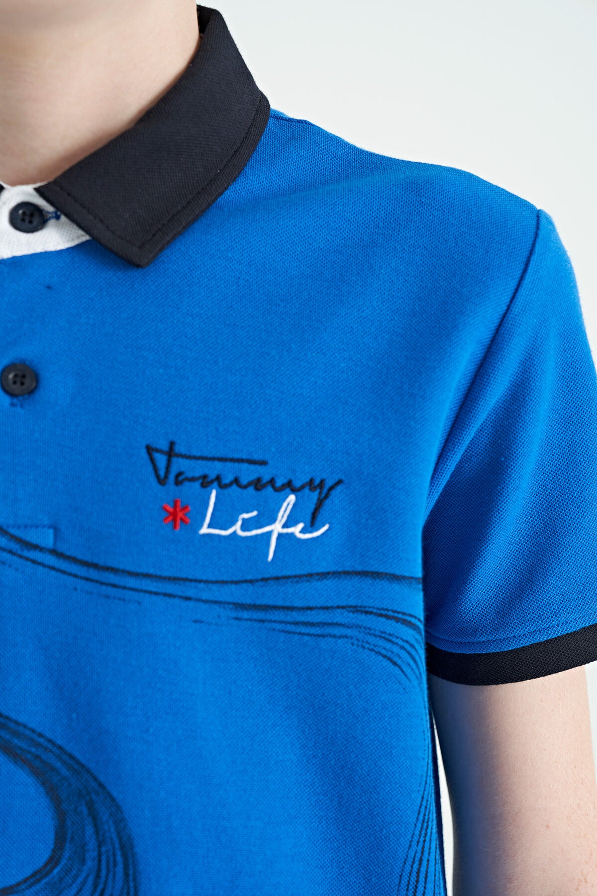 Printed Sleeve Detailed Standard Fit Polo Collar Boys' T-Shirt - 11165