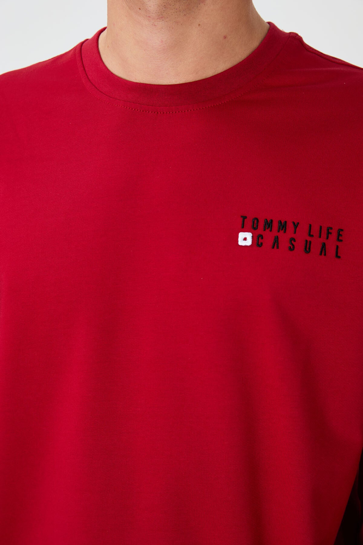 Red - Black Casual O Neck Elastic Cuffed Cotton Men's Oversize Tracksuit Set - 85120