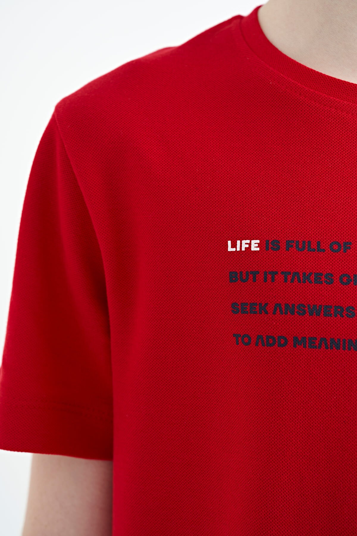 Red Print Detailed O Collar Standard Fit Boys T-Shirt - 11145