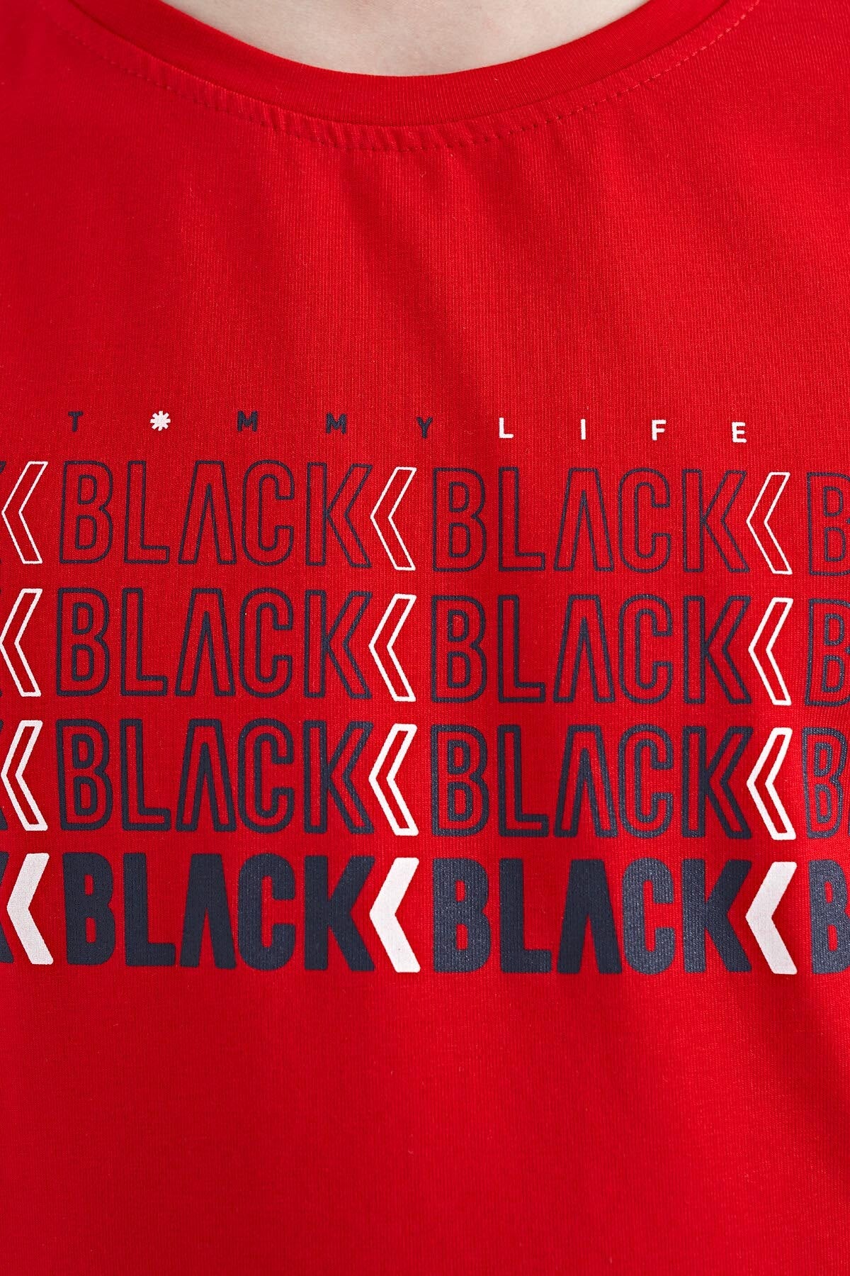 Red Print O Collar Standard Fit Boys T-Shirt - 11149