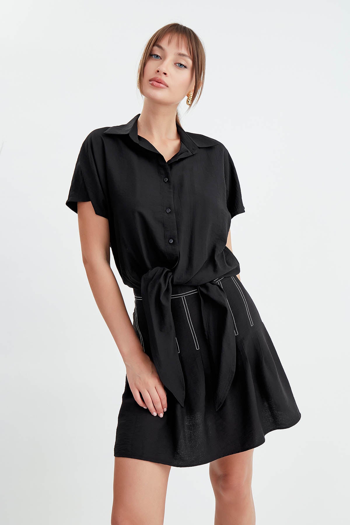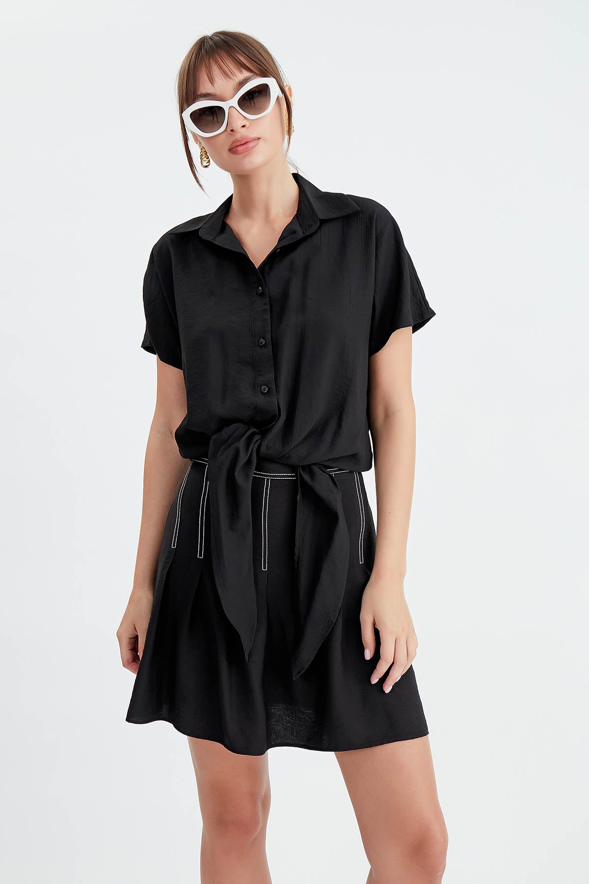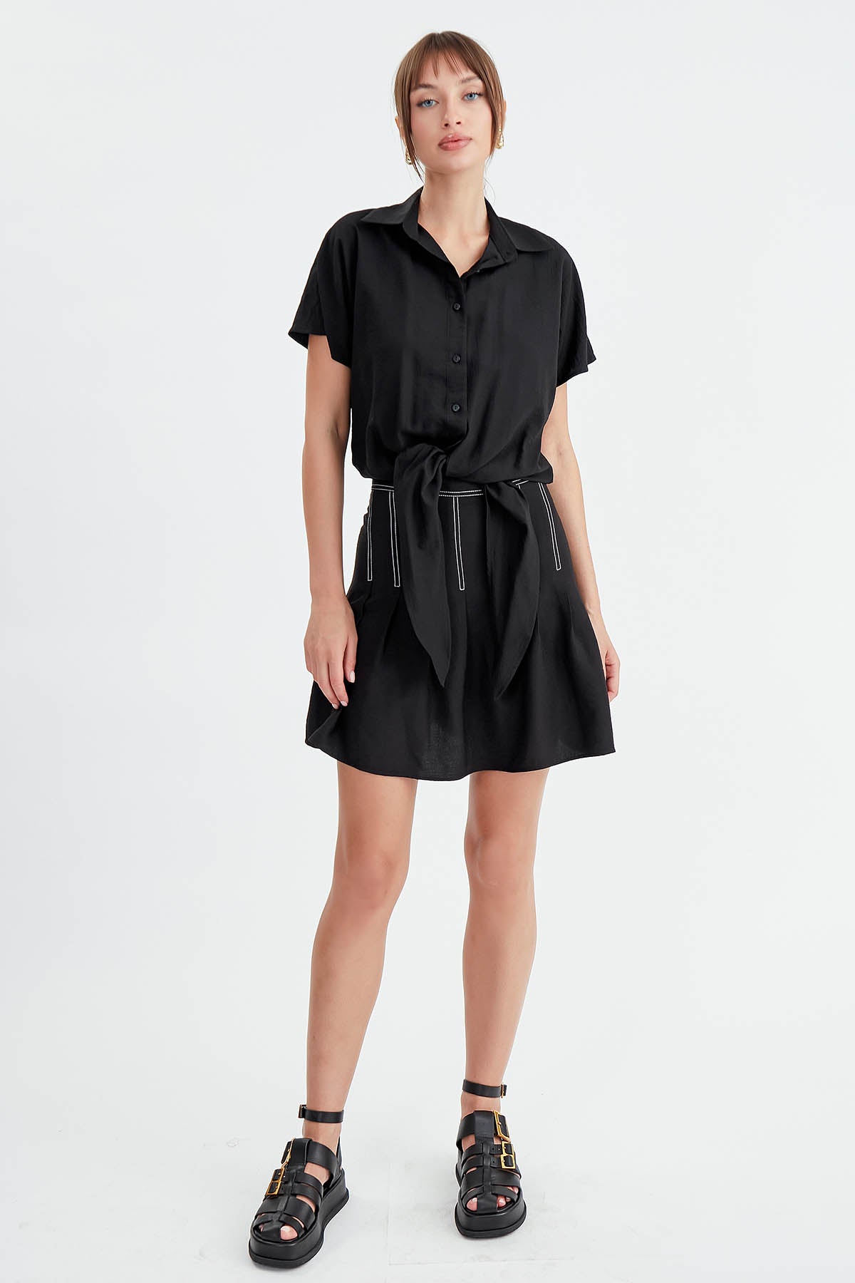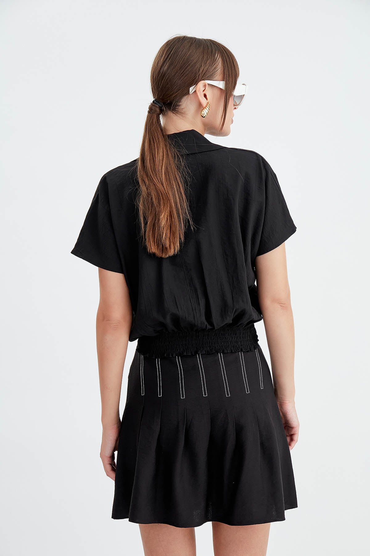 Fabric Information: 80% Viscose, 20% Elastane Product Size:45 cm Model Measurements: Waist:36 cm, Height:1.75 cm, Bust:83 cm, Hips:89 cm Model Wearing: S/36