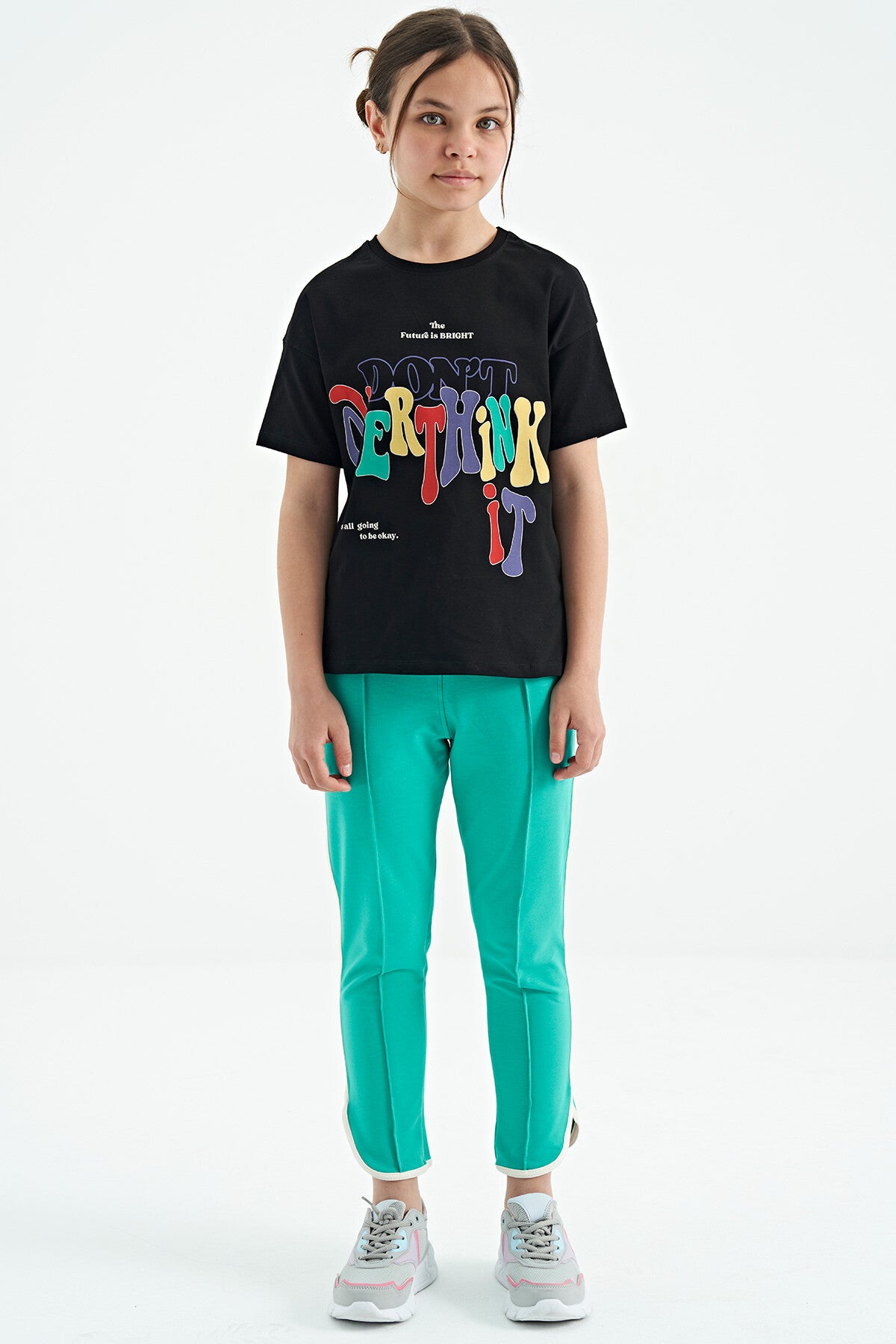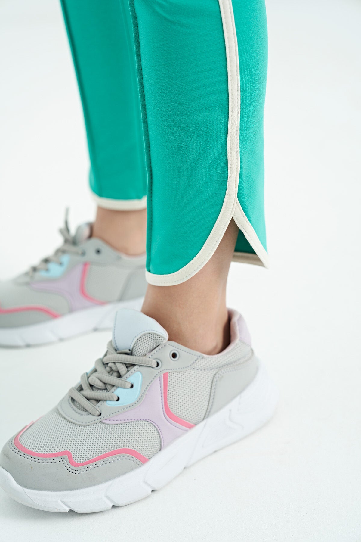 Bias Detailed Laced Front Panel Wide-Legged Girls' Tracksuit Bottom - 75124