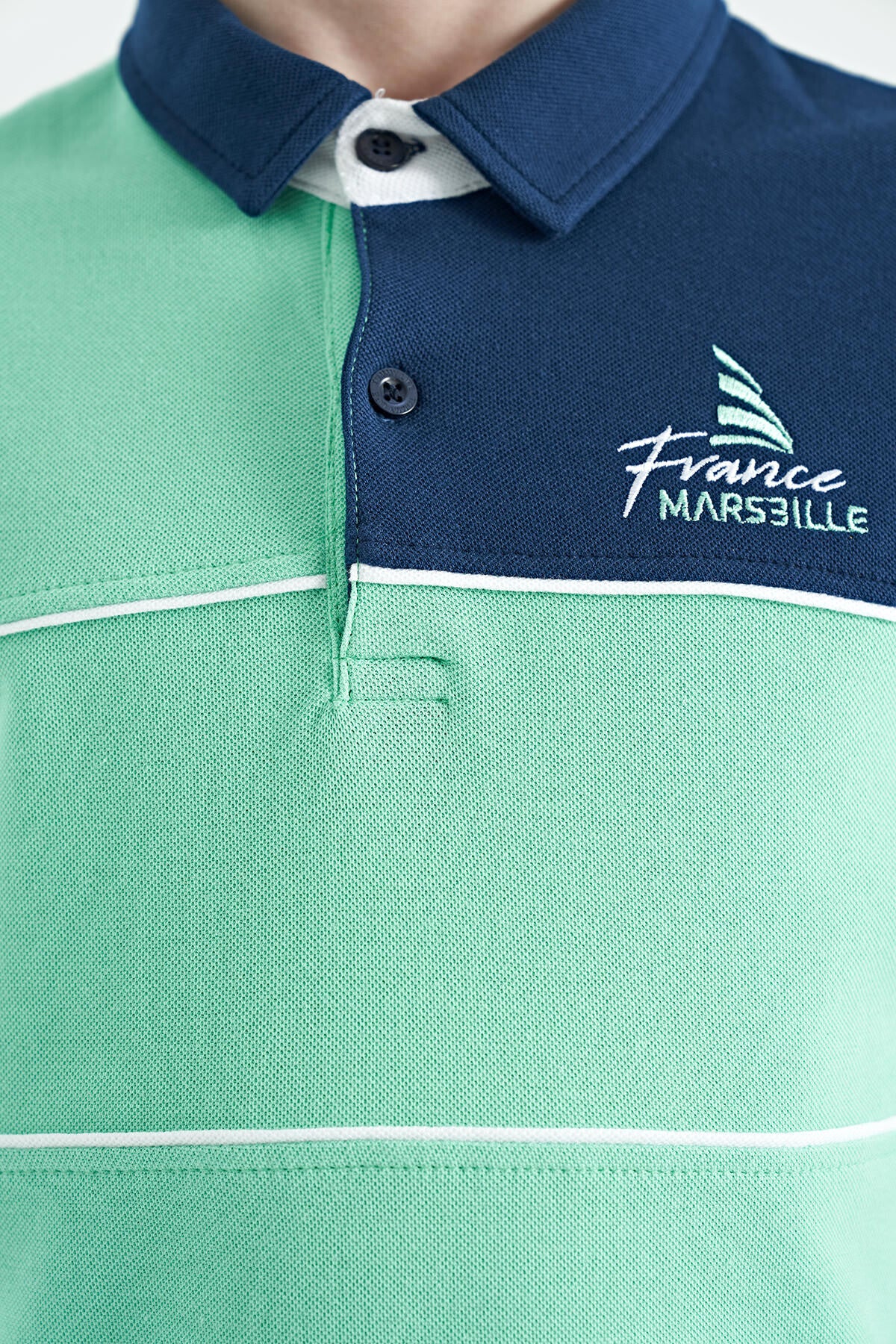 Block Embroidered Letter Detailed Standard Pattern Polo Collar Boys T-Shirt - 11109