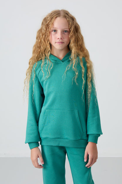 Cotton Fleece-Lined Soft Textured Standard Fit Embroidered Girls' Tracksuit Set - 75162