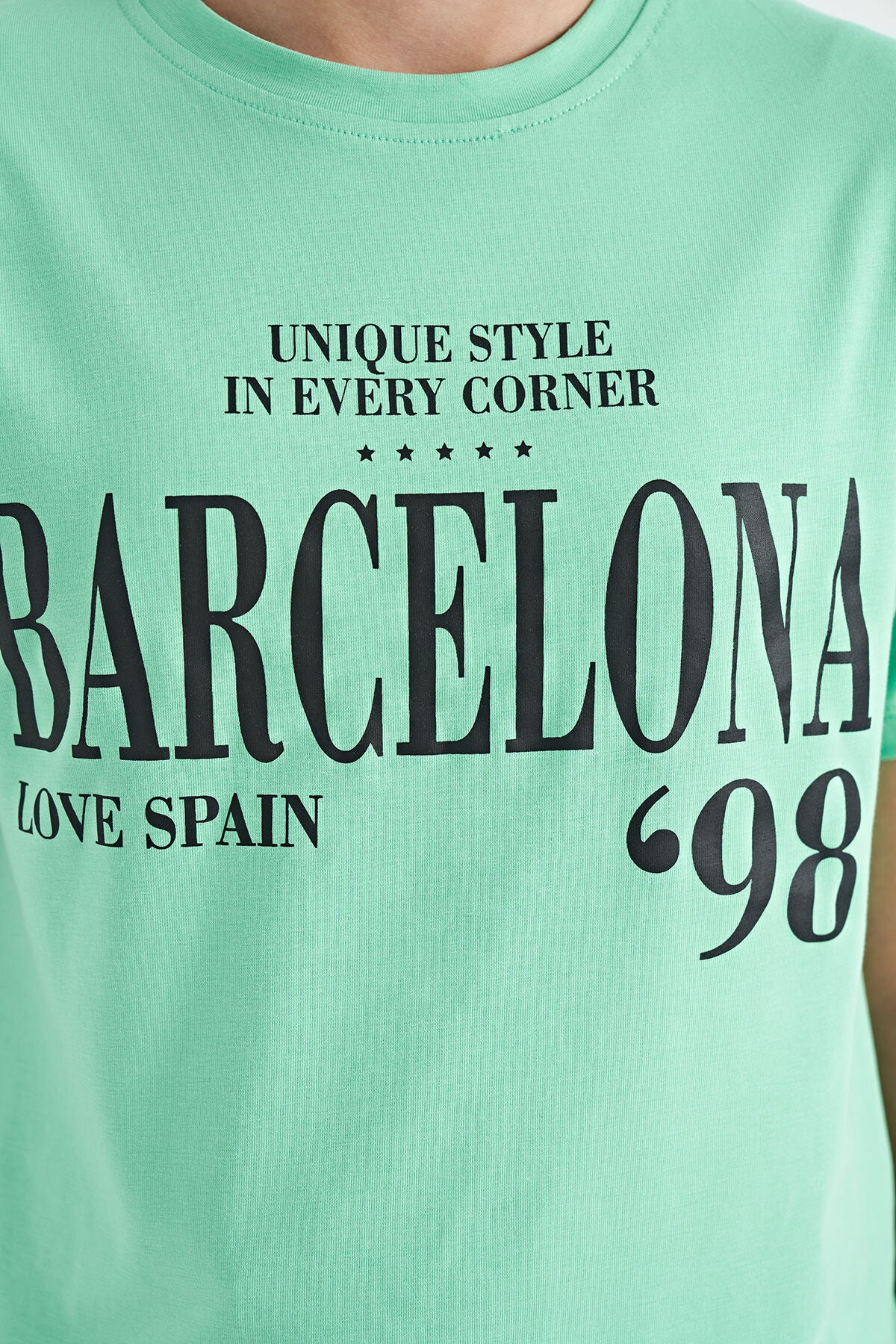O Collar Print Low Shoulder Oversize Girls' T-Shirt - 75115