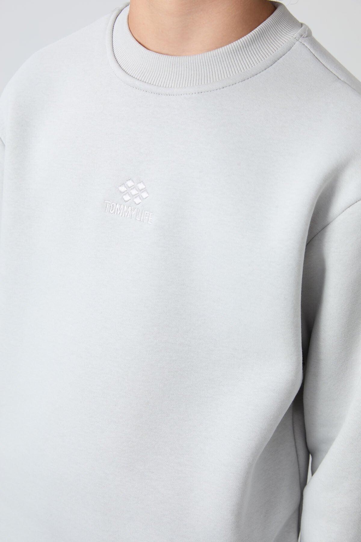 Stone Cotton Thick Fleece-Lined Soft Textured Standard Fit Embroidered Boys' Tracksuit Set - 11249