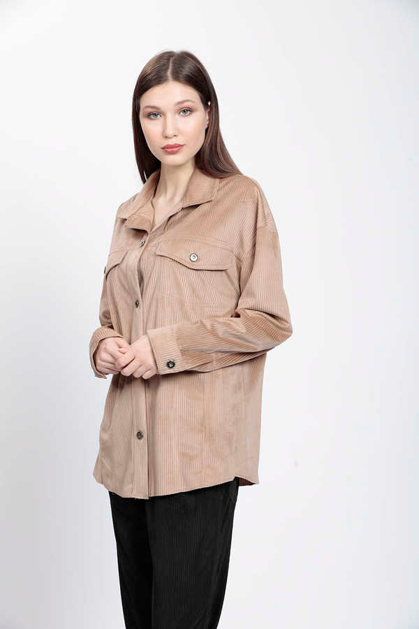 STRIPPED VELVET FABRIC LUMBERJACK SHIRT