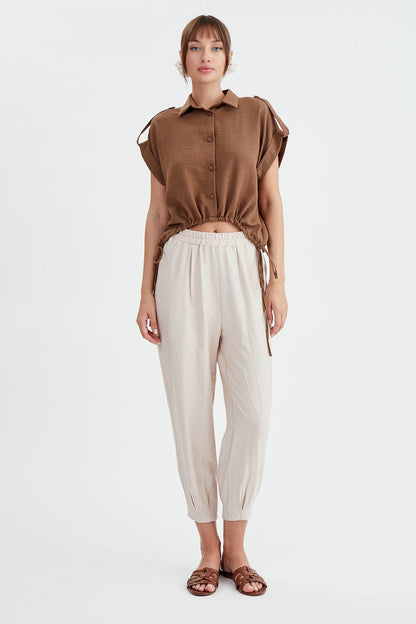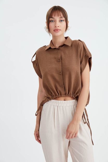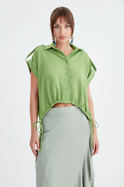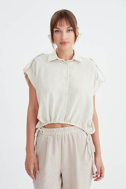 VISCOSE LINEN SHIRT WITH THE WAIST