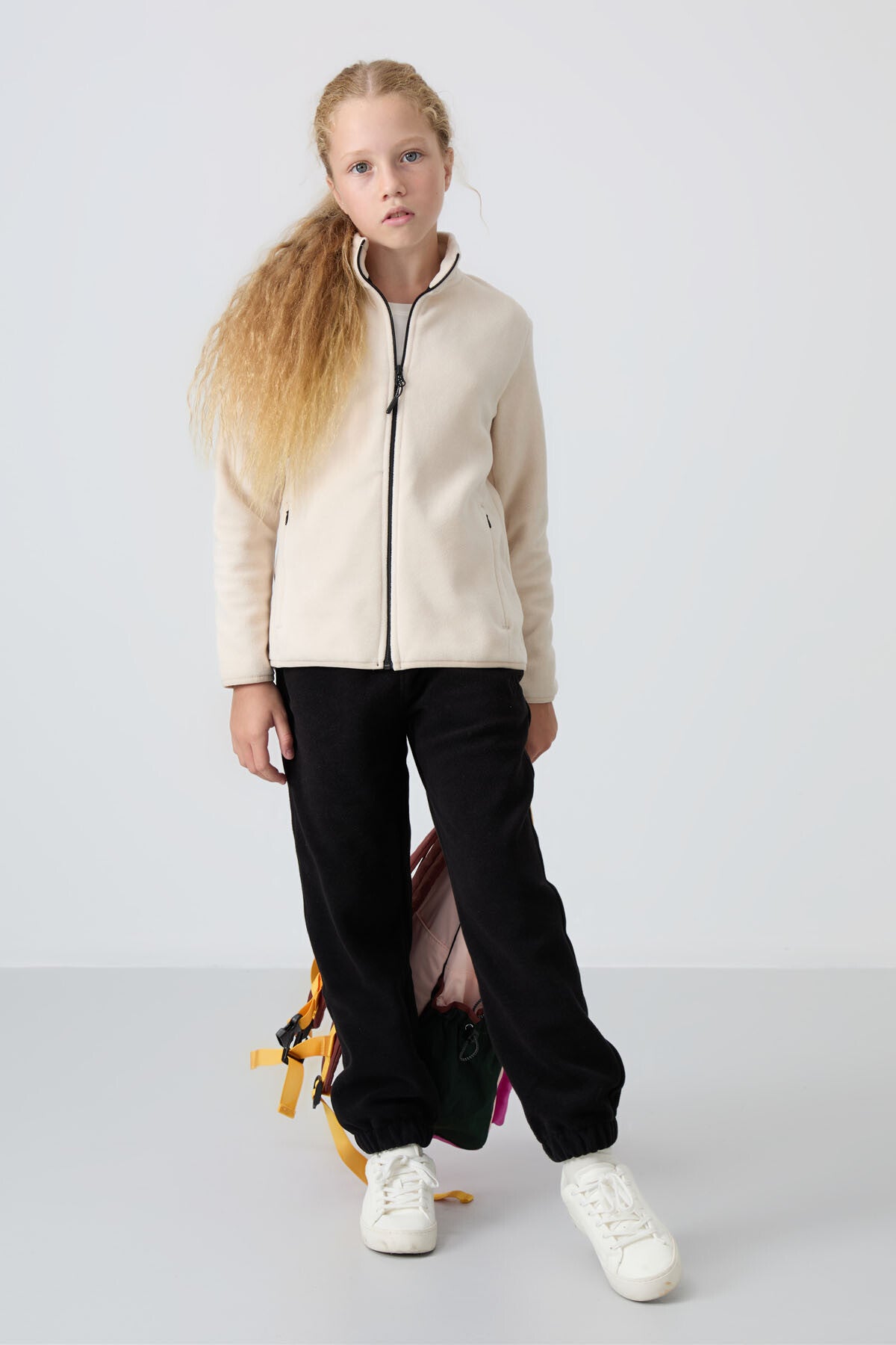 Thick Soft Textured Standard Fit Embroidered Fleece Girls' Sweatshirt - 75154