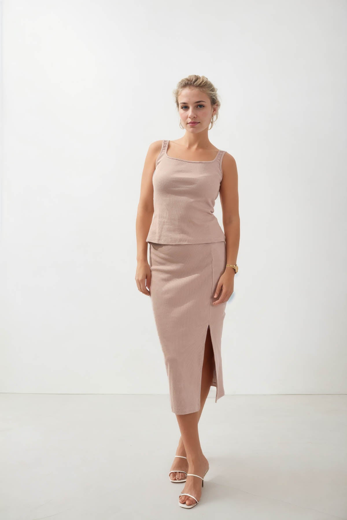 Fabric Information: 80% Viscose, 20% Elastane Product Size: 50 centimeters Model Measurements: Waist:36 cm, Height:1.75 cm, Bust:83 cm, Hips:89 cm Model Wearing: S/36