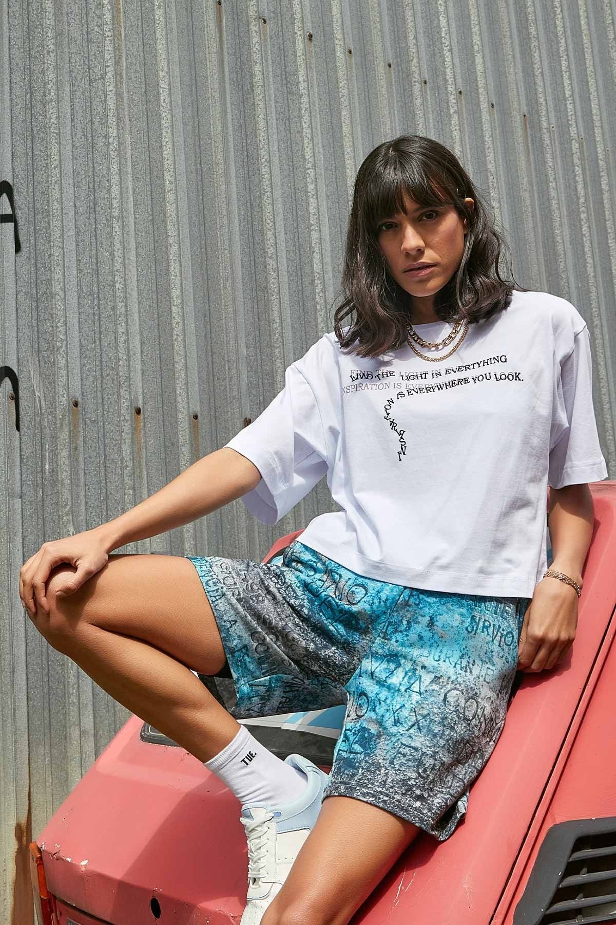 Turquoise Print Batik Pattern Laced Comfortable Fit Bermuda Women's Shorts - 91004